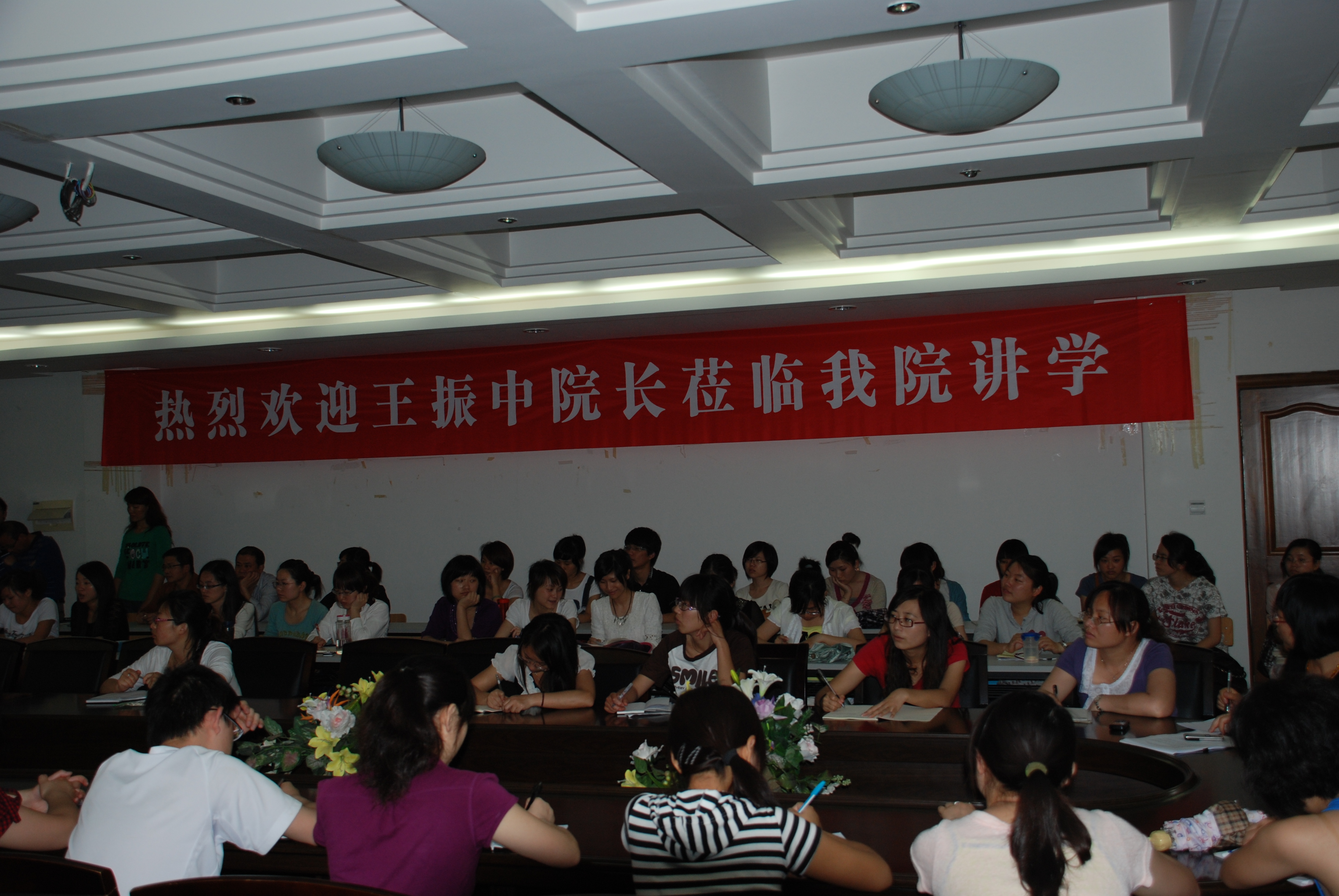 孙芙蓉院长主持了讲座。王振中教授从一个从事多年基层教育的工作者的角度为我们进行有关新课程改革各方面问题的解读,讲座的内容主要包括新课程改革所取得的成绩、所存在的问题以及当下应该关注什么三个方面。讲座结束后,王教授还就有关问题与在座的师生做了深入的交流。应该说,本次讲座使我们从另一个层面——实践的层面,对新课程改革有了一个深入的了解,特别对同学们日后的学习及工作都有重要的意义。