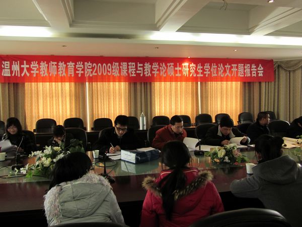 09级硕士研究生学位论文开题报告会。开题报告会分心理组、教育和教育技术组两组同时进行,分别由徐速教授和胡来林教授主持。我院部分硕士导师及10级全体研究生参加了开题报告会。