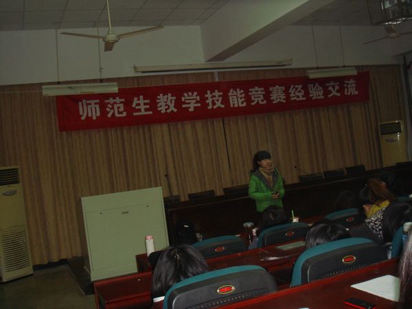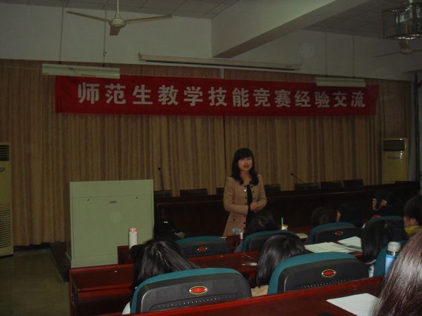 会议开始,周老师详细介绍了师范生教学技能竞赛的情况:该竞赛为省教育厅组织的学科竞赛之一,已成功举办四届。作为校级选拔赛的承办单位,我院不仅圆满完成校级选拔的赛事组织工作,并且制定和实施了周密的竞赛培训方案。学校也在此次省师范生教学技能竞赛中取得不俗成绩:选派的10名参赛选手全部获奖,一等奖1项,二等奖6项,三等奖3项,竞赛成绩在浙江省高等学校中名列第二,仅次于浙师大。