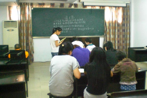 此次上课的内容是教写字和简笔画。“知心姐姐”们先在黑板上抄了一首《陋室铭》,将难认的字标上了拼音,接着让孩子们一个字一个字地抄下来。有些孩子没什么基础,连最简单的笔顺也不会写,志愿者们就耐心的教他们认拼音,一笔一划的带着他们写过去。当然,有些孩子比较大了,她们很快地抄完了这首《陋室铭》。等写得差不多时,“知心姐姐”们一句一句地教他们念,鼓励他们都能背下来。毕竟知识需要积累,多一些知识总是有用的。