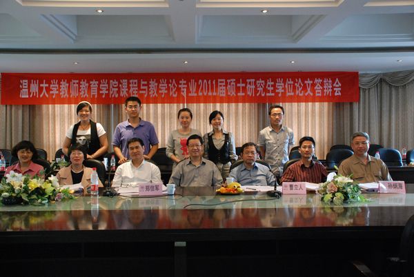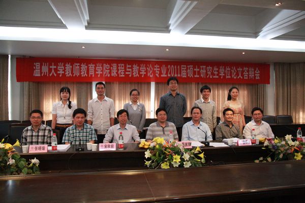 2011年5月28日下午,我院在北校区行政楼第五、六会议室举行2011届硕士研究生学位论文答辩会。答辩主席分别由浙江大学博导曹立人、盛群力教授担任,答辩委员会成员由浙江师范大学周跃良教授和孙炳海副教授、浙江海洋学院宋秋前教授、丽水学院周湘浙教授,以及我院胡来林、潘玉进、郑信军、徐速、张文杰教授及张晓瑜副教授组成,朱倩云、万荣根分别担任答辩委员会秘书。参加本次答辩会的2011届硕士研究生分别来自教育心理学、课程论、教学论、信息技术教育等方向。09级和10级全体研究生参与旁听。