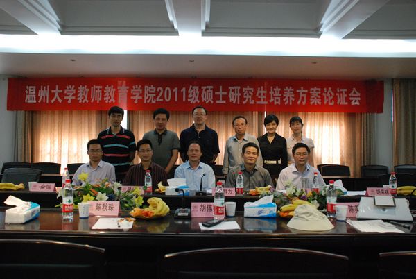 2011级硕士研究生培养方案论证会。校研究生部余闯副部长、浙江大学盛群力教授、浙江师范大学周跃良教授、浙江师范大学孙炳海副教授、常务副院长胡来林教授、副院长彭小明教授及部分硕士生导师参加了本次会议。