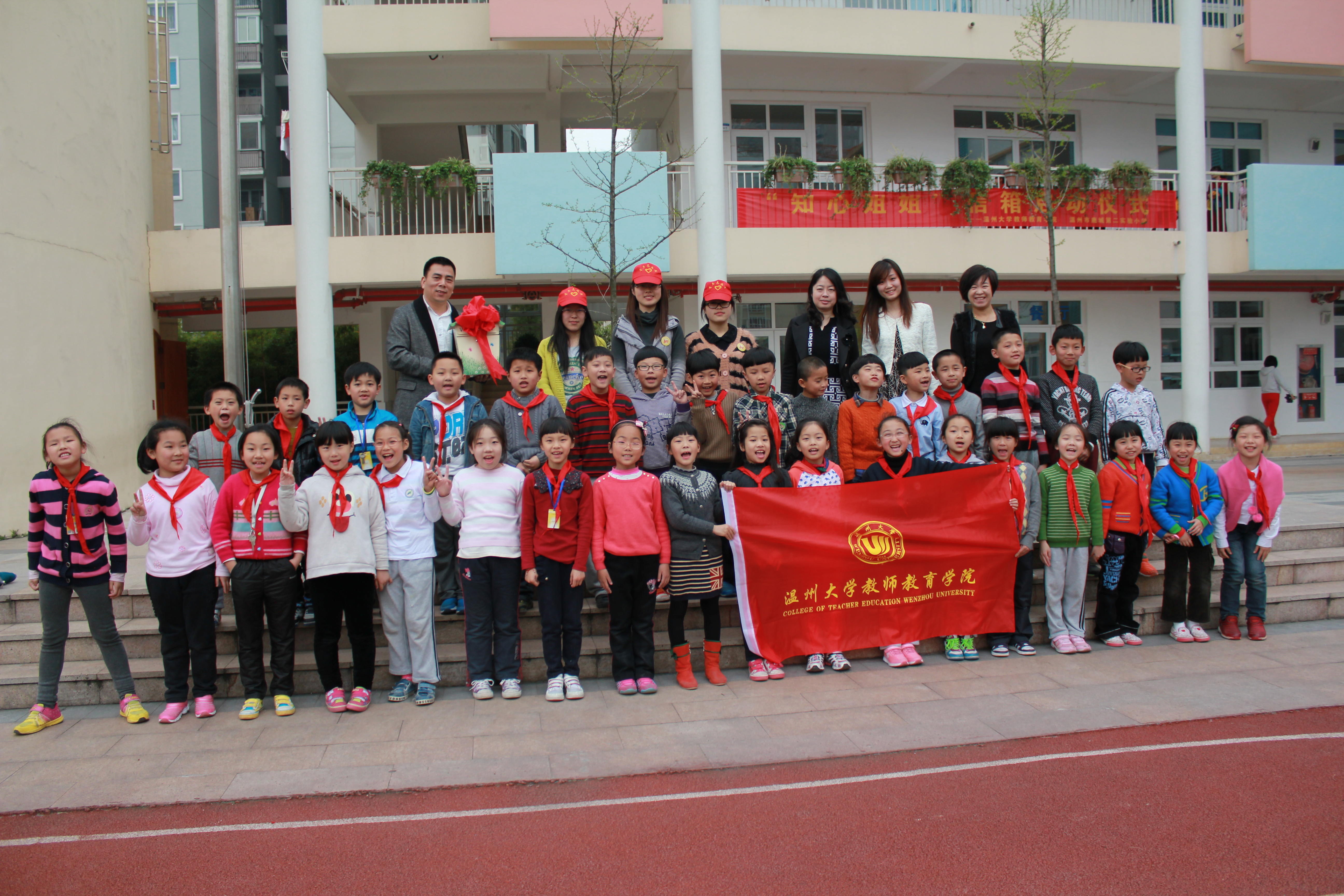 “知心姐姐”青年志愿者队伍来到温州市鹿城第二实验小学,为该校的小学生朋友带来“知心姐姐”信箱,并举行信箱启动仪式。学院党总支副书记嵇小怡、鹿城第二实验小学金志明校长出席“知心姐姐”信箱启动仪式。启动仪式由鹿城第二实验小学副校长李小静老师主持。