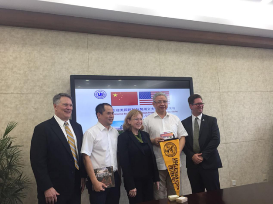 ,双方就推进我校与美国阿帕拉契亚州立大学在小学教育方面的硕士项目合作进行了交流。明天(10月11日)下午,Sandres博士会为师生们做网络学习环境的专题讲座。