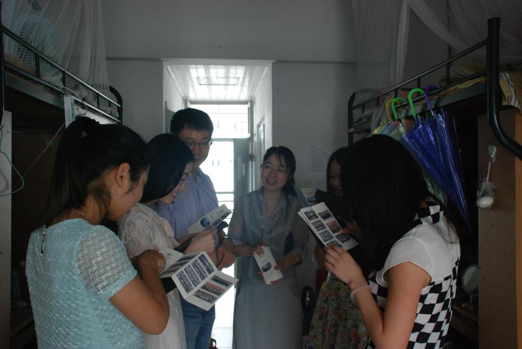 在2013届毕业典礼后的第一个早晨,院党委书记蔡联群、副书记嵇小怡以及辅导员老师和在校同学们来到了毕业生的寝室,跟毕业生们一一送别,并赠送了有院长赠言的精美的书签和相册,共走访了80余个寝室,探访了近350名学生。