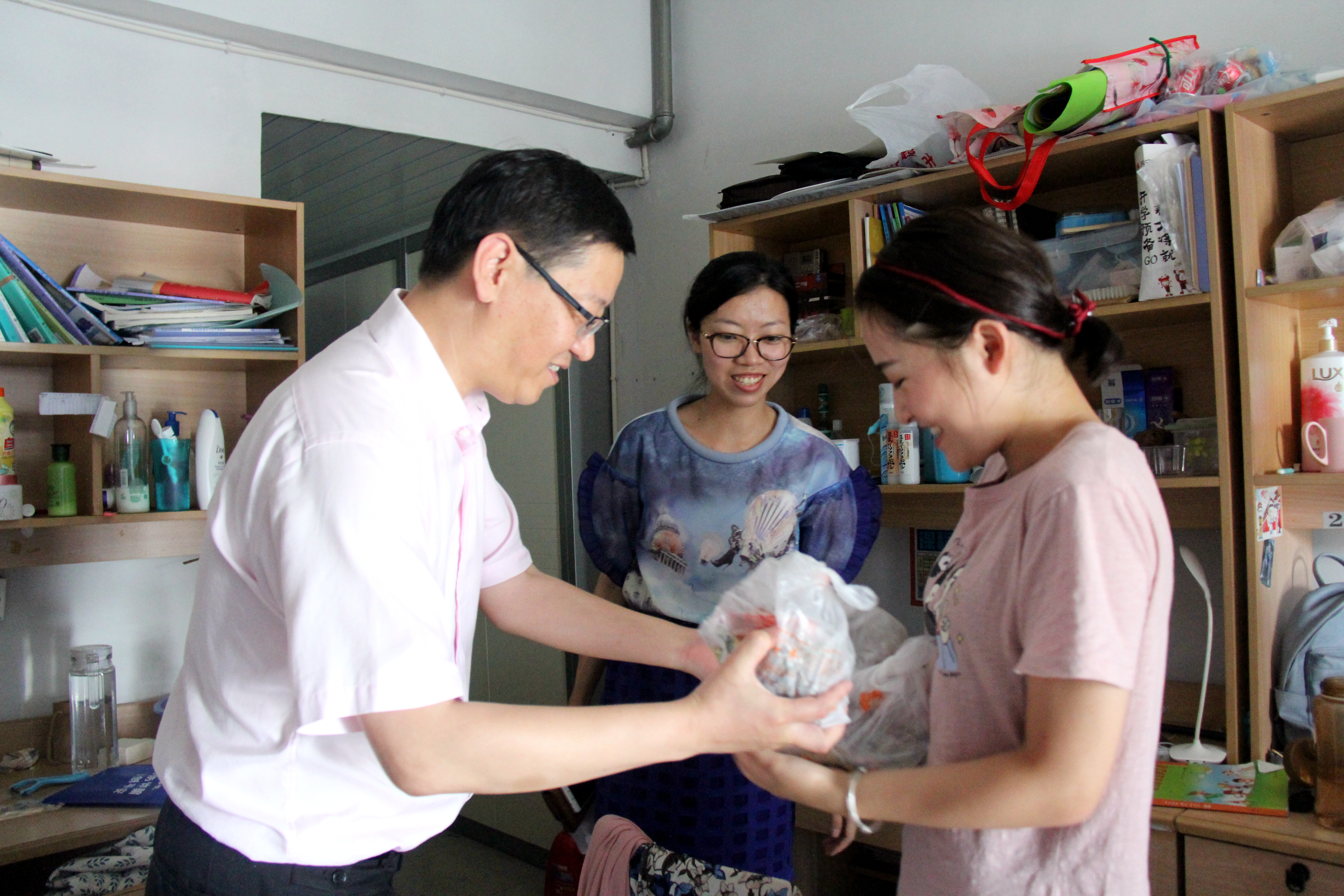 各位老师们兵分几路,去往各个楼栋为同学们送去祝福。炎炎夏日,却挡不住这来自学院领导带来的清凉礼物。同学们在收到礼物的惊喜之余,还为学院老师送去了祝福。郑院长这样说道:“端午节送粽子历来是教师p站视频