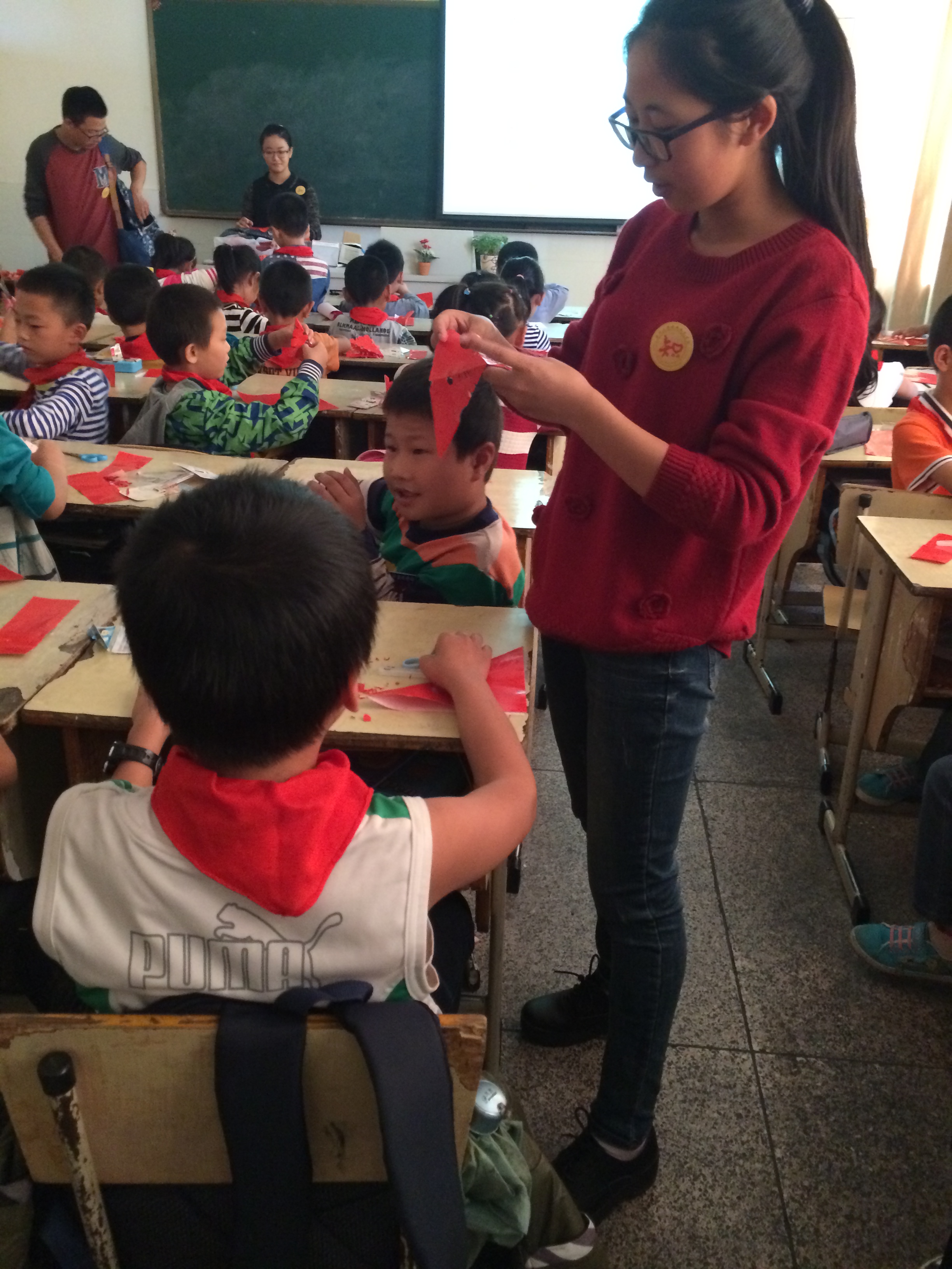 2014年10月22日,阳光明媚,知心姐姐留守队的志愿者们来到了温州市益民学校为三(6)班的孩子们上了一堂有趣的班会课。本次班会课的主题是:“巧手美化生活,发现生活之美”。在队友们的齐心协力,团结合作下,此次班会取得了极大的成功。