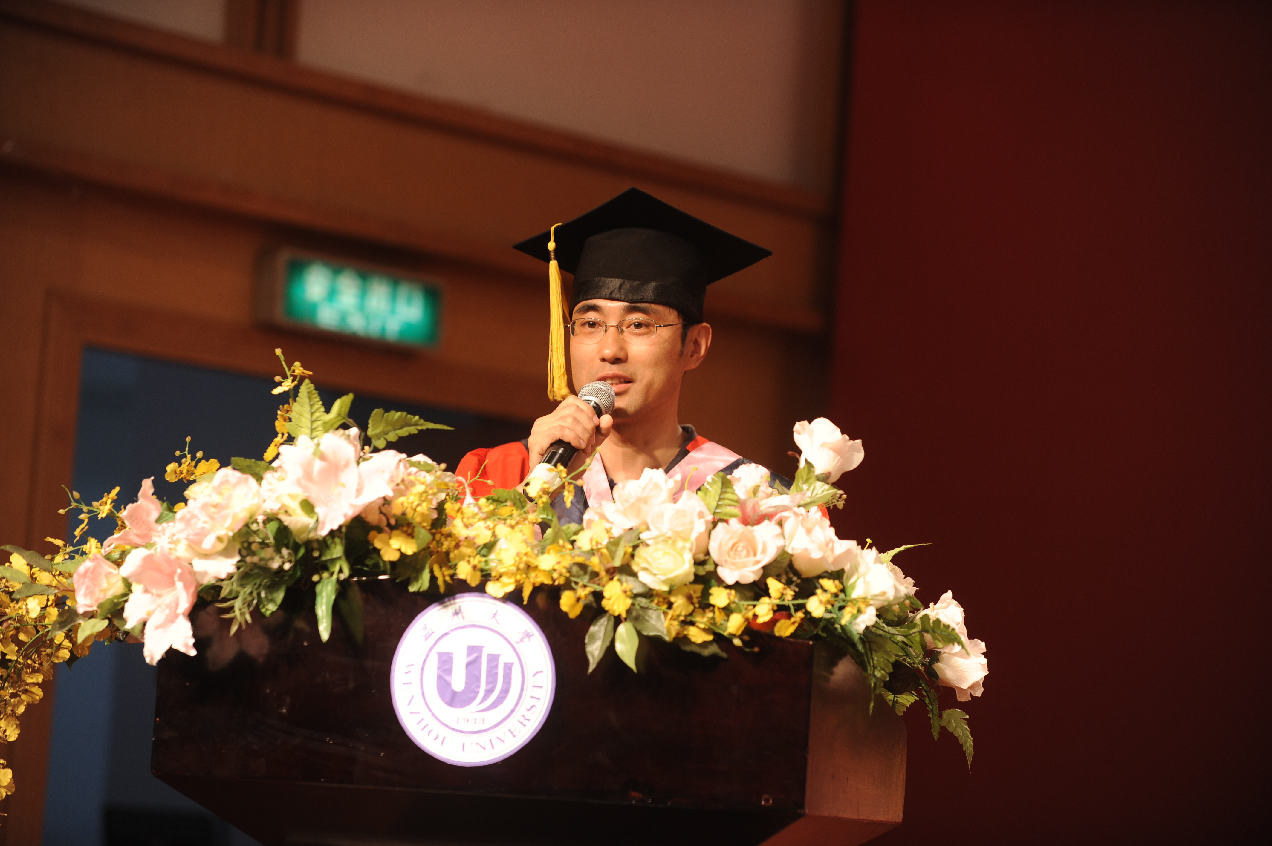 毕业典礼前夕,音乐厅门外,毕业生们对着镜头展现自己最美的笑颜,一幅幅动人的画面激荡着心田,也给校园留下最美的定格。下午2点半整,2013届毕业典礼正式开始。蔡联群书记向同学们一一介绍台上就坐的嘉宾,宣布一位老师的名字就响起一阵阵欢呼声、尖叫声和掌声,此起彼伏,表达出了毕业生们对母校、对恩师们由衷的爱戴。毕业典礼分为五个环节:郑信军院长致辞;各系主任、毕业生代表发言;颁奖;颁发学位证书、毕业证书授予仪式。