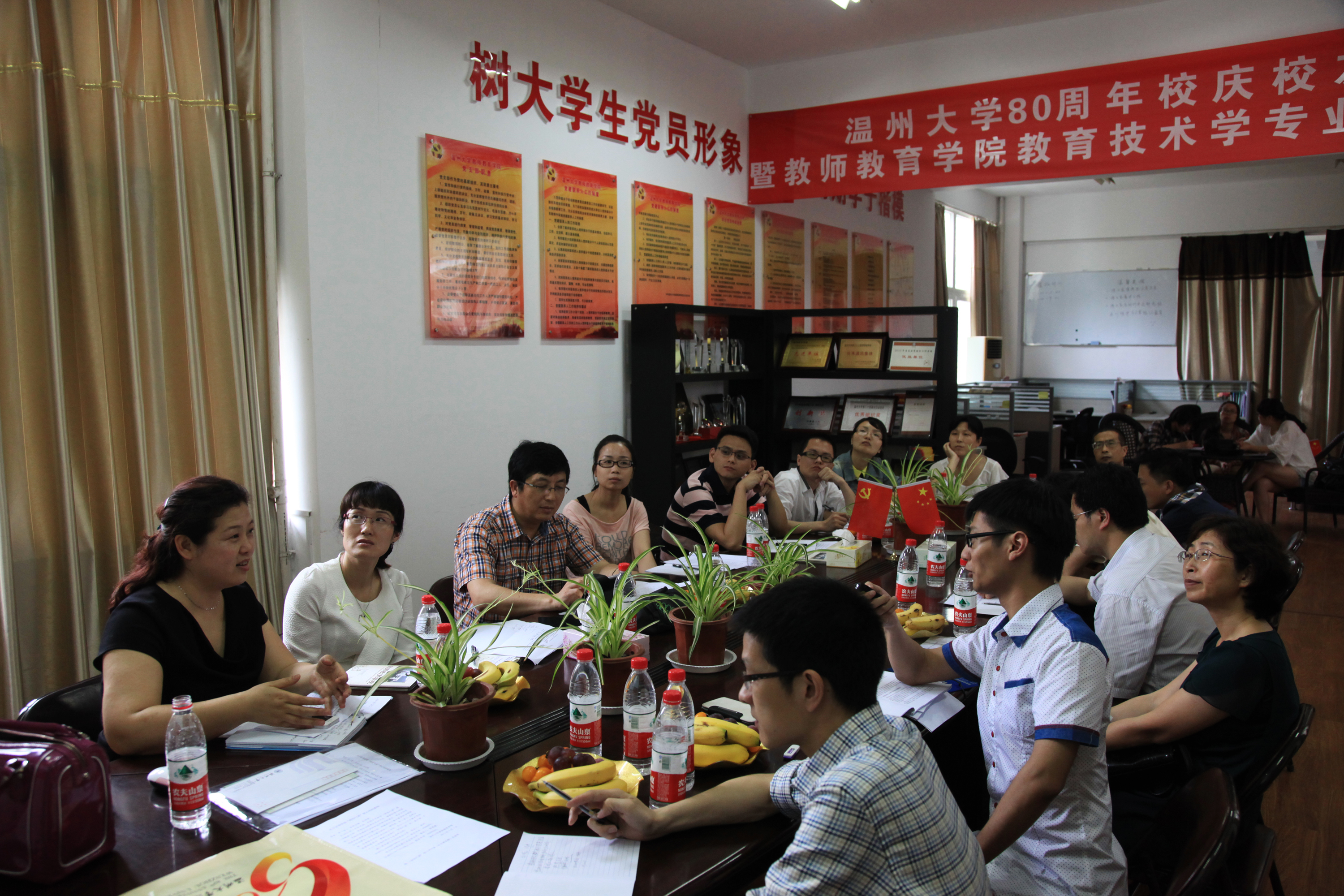的气魄与变革,追忆一起走过的美好青春和校园时光。下午在3号楼118会议室召开了教育技术专业建设研讨会,会议由系主任张新立老师主持,温州市电化教育馆馆长黄岳明、教育技术系毕业生代表、孙芙蓉副院长出席了本次研讨会。孙芙蓉院长对各位教育技术系的校友表示热烈欢迎,并向大家介绍了根据教育技术学专业规范而制定的人才培养方案。研讨会上,孙芙蓉院长向温州市电化教育馆的馆长黄岳明老师颁发校外兼职专业负责人的聘书,黄馆长根据教育技术学专业与时俱进的特性,提出人才培养要明确专业核心基础,掌握系统设计的思想,让学生做到基础牢固、学有专长,此外还向专业反馈了地方学校的教育需求,阐述了智慧教育城市的理念和数字化校园的规划对教育技术学人才培养的借鉴与挑战。接下来,由09教育技术的胡冬品介绍了p站视频