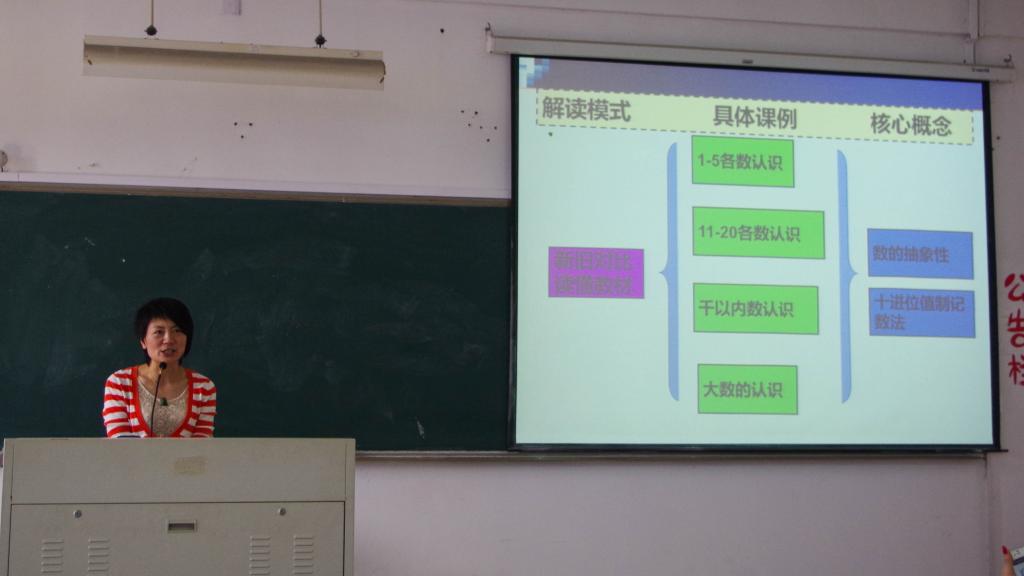 会议伊始,南老师与同学们分享了为师多年的感想:教师拥有属于自己的“一亩三分田”的幸福感。接着,南老师指出,作为教师,只有读懂教材、读懂学生,才能更好地融入教学工作。借此,南老师引出读懂小学课本的主题。通过“新旧对比,读懂教材”的解读模式,结合“1-5各数认识”、“11-20各数认识”和“千以内各数认识”等具体课例,与同学们进行了互动。南老师从“数的抽象性”和“十进位值制计数法”两个核心概念出发,结合实例,让同学们理解了透过文本、通过教学所体现的数学教育的本质所在。最后,南老师向同学们提出衷心祝福,并希望未来能够以更多的方式带给我们更多的认识。