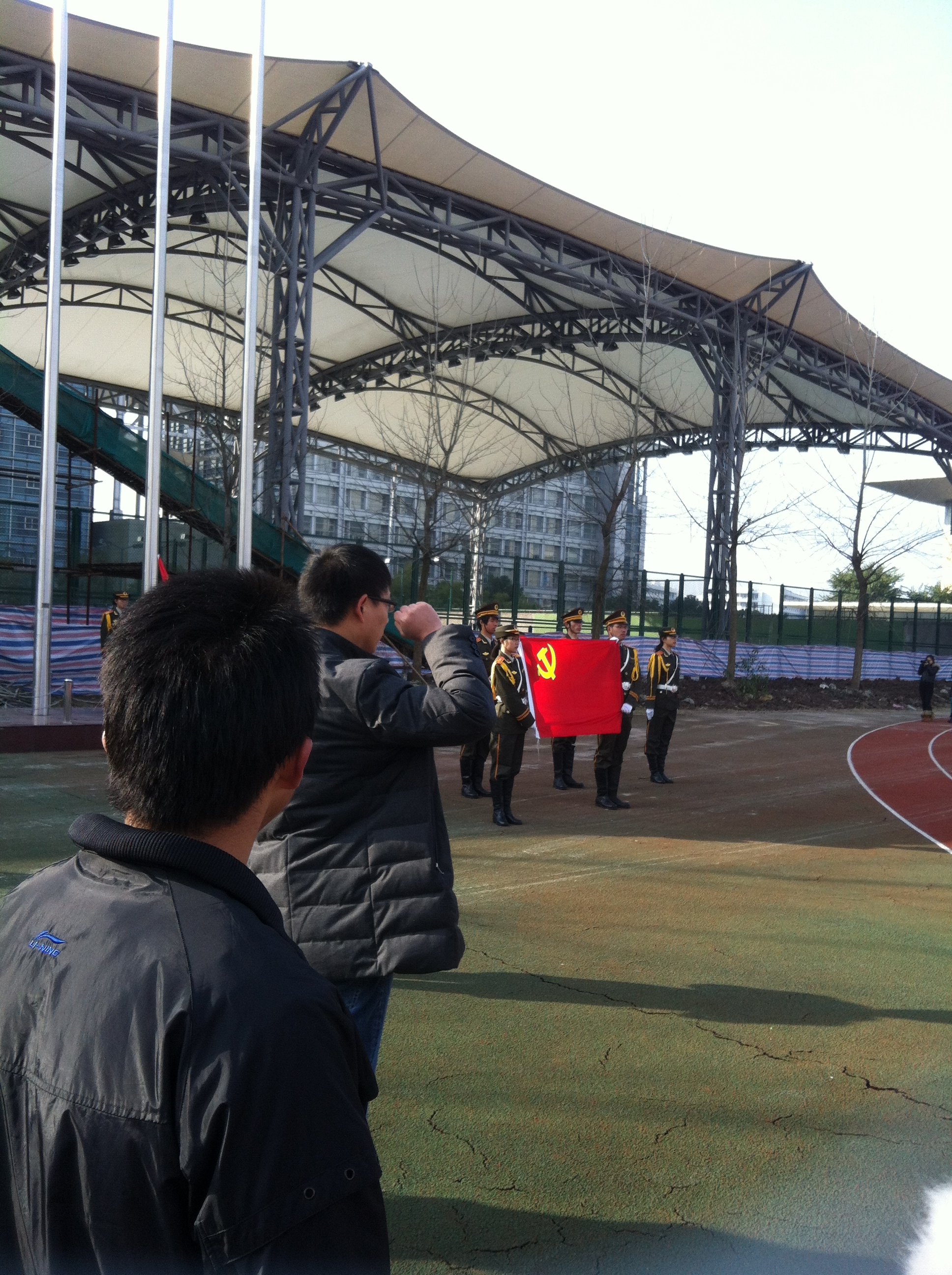 为进一步激发我院师生的爱国爱校热情,学院党总支组织师生参加学校元旦升国旗仪式。 2013年1月1日,在新年的第一天,学院两百多名师生和院党总支书记蔡联群、副书记嵇小怡一起,齐聚在国旗下,共同见证了这庄严而又喜庆的时刻,以积极向上的精神面貌迎接充满希望的2013年的到来。