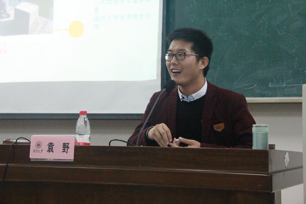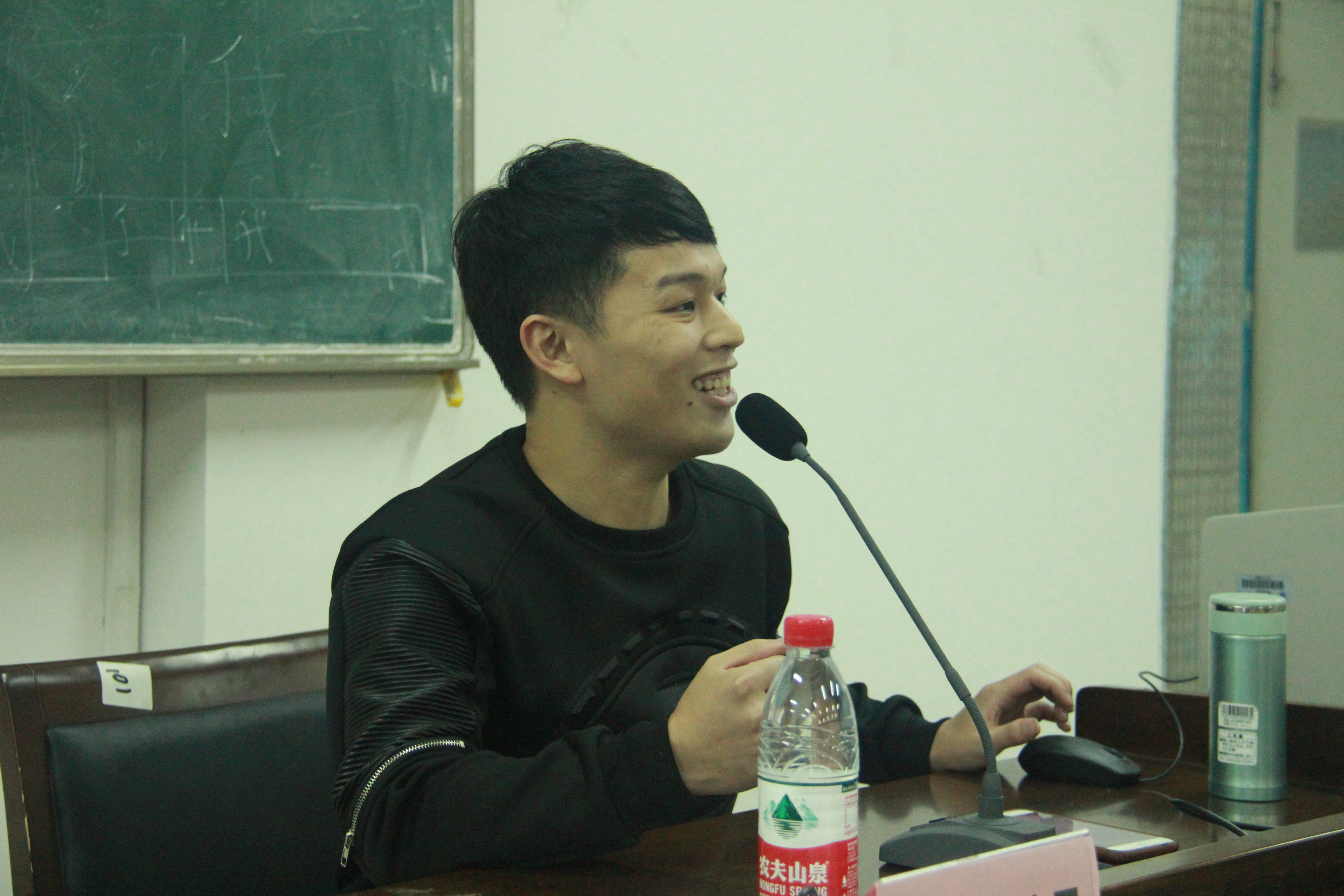 在大家期待的目光中,我们迎来了第二位分享者:来自数学与信息学院的袁野学长。他以一部电影引出了自己对曾经的大学生活的感想与领悟。他认为大学时代我们应该尝试更多的挑战,比如当年的他并不会做ppt,但是通过熬夜学习终于学会了。他感悟到只要你肯去学习,你什么都可以学的会,但是贵在坚持。生活中有很多是我们改变不了的,但我们仍然要坚持去做,我们不能忘记我们的初心。我们会收获爱与感动,是许多带不走的回忆,袁野学长如是说。同学们都听得十分认真,并通过学长的讲话,学习到了许多的宝贵的东西。