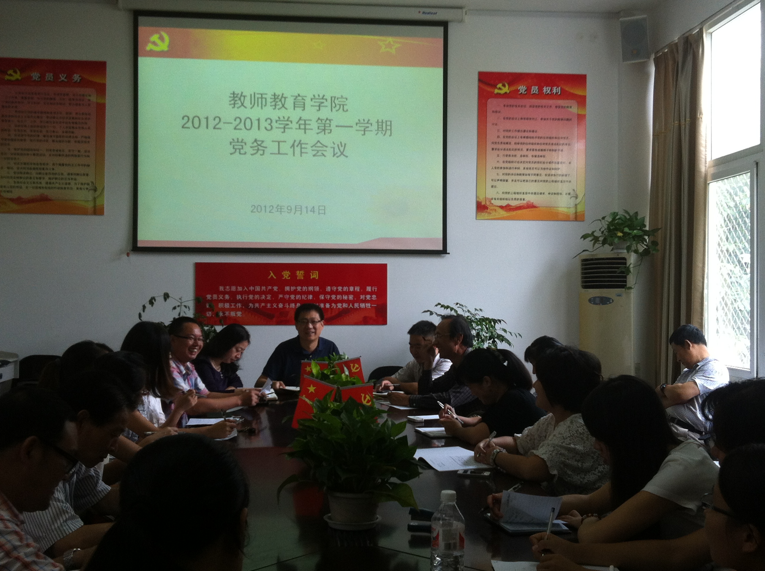 2012-2013学年第一学期党务工作会议在党员之家召开。参加会议的有各教工党支部书记、各学生党支部书记和支委等。会议由我院党总支书记蔡联群同志主持。