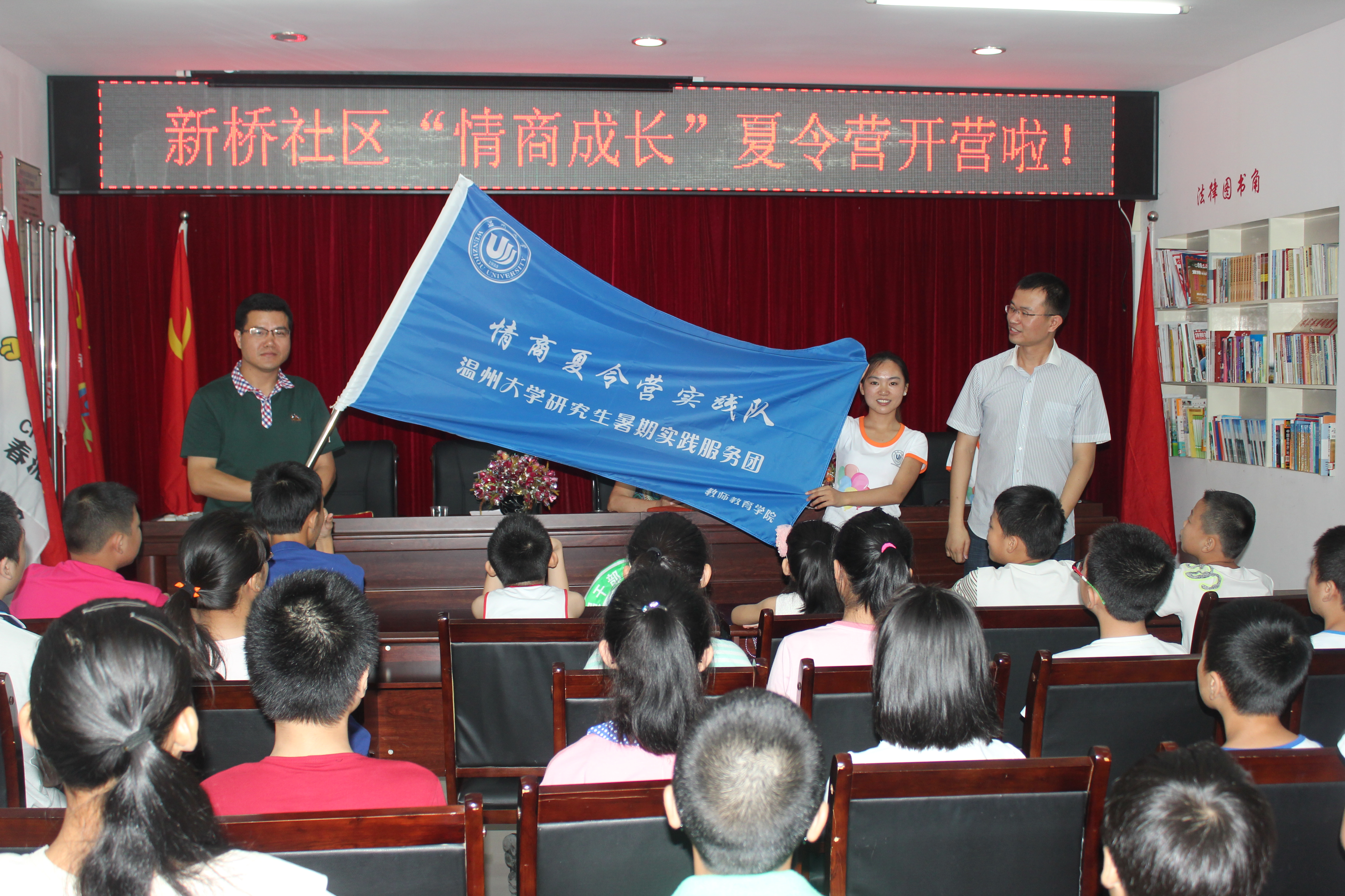 情商夏令营实践队和新桥社区共同主办的“情商成长夏令营”正式开营,团市委学少部部长池腾飞、新桥社区主任许信月、p站视频