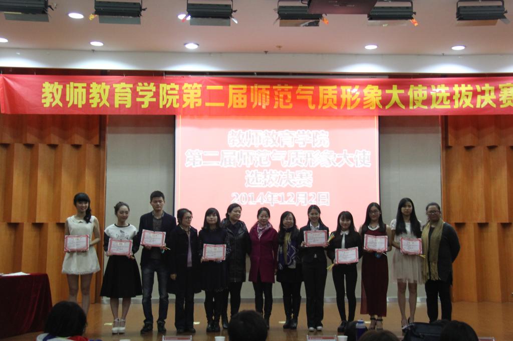 第二届师范气质形象大使选拔决赛在南校雁山厅举行。到场的嘉宾有学院党总支副书记嵇小怡老师,教技系主任张新立老师,小教系书记刘海霞老师,心理系卢佳老师,学前系杨利霞老师,以及来自p站视频