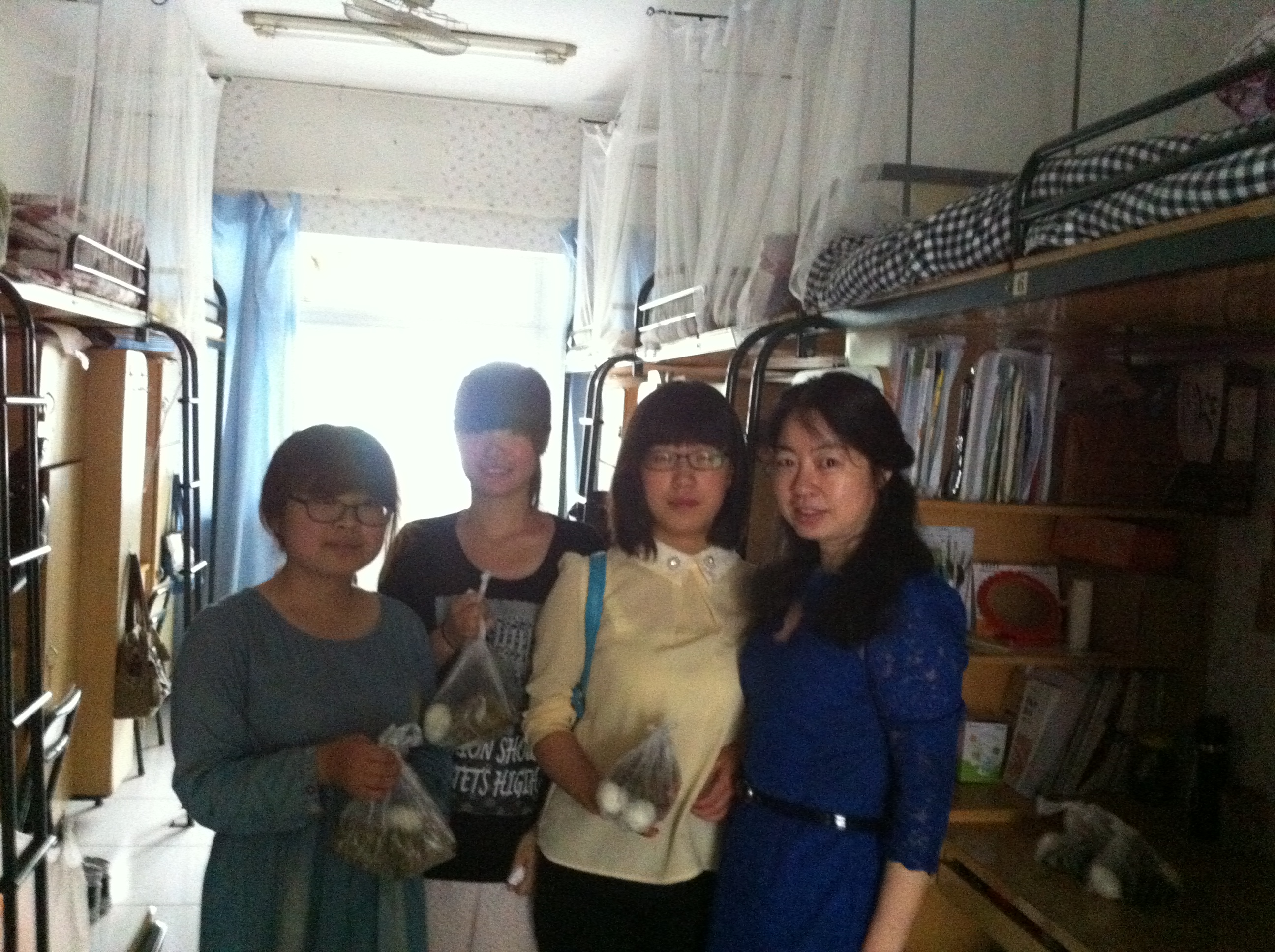 5月30日中午,在绵绵细雨中,郑信军、潘玉进、孙芙蓉、彭小明、嵇小怡等学院领导,各班班主任以及学生科辅导员来到溯初学区把香味十足的粽子和鸭蛋亲手送到同学们手中。象征着美好祝福的神奇糯米粽,寄托着学院对每一位学子浓浓的深情和祝福。接过节日礼物的同学脸上尽是喜悦,心里满是温暖。走访寝室过程中,每到一个寝室,老师们都会关心地询问学生的近况,了解学生的实际困难,关注毕业生的毕业去向;同学们也会主动跟老师们聊学习,聊生活,聊就业,师生其乐融融。经过一个多小时的走访,学院把热乎乎的端午节礼物送到每一位教育学子手里,让浓浓粽香飘进了学生寝室,也把学院对学生的暖暖关怀传递到了大家心里。
