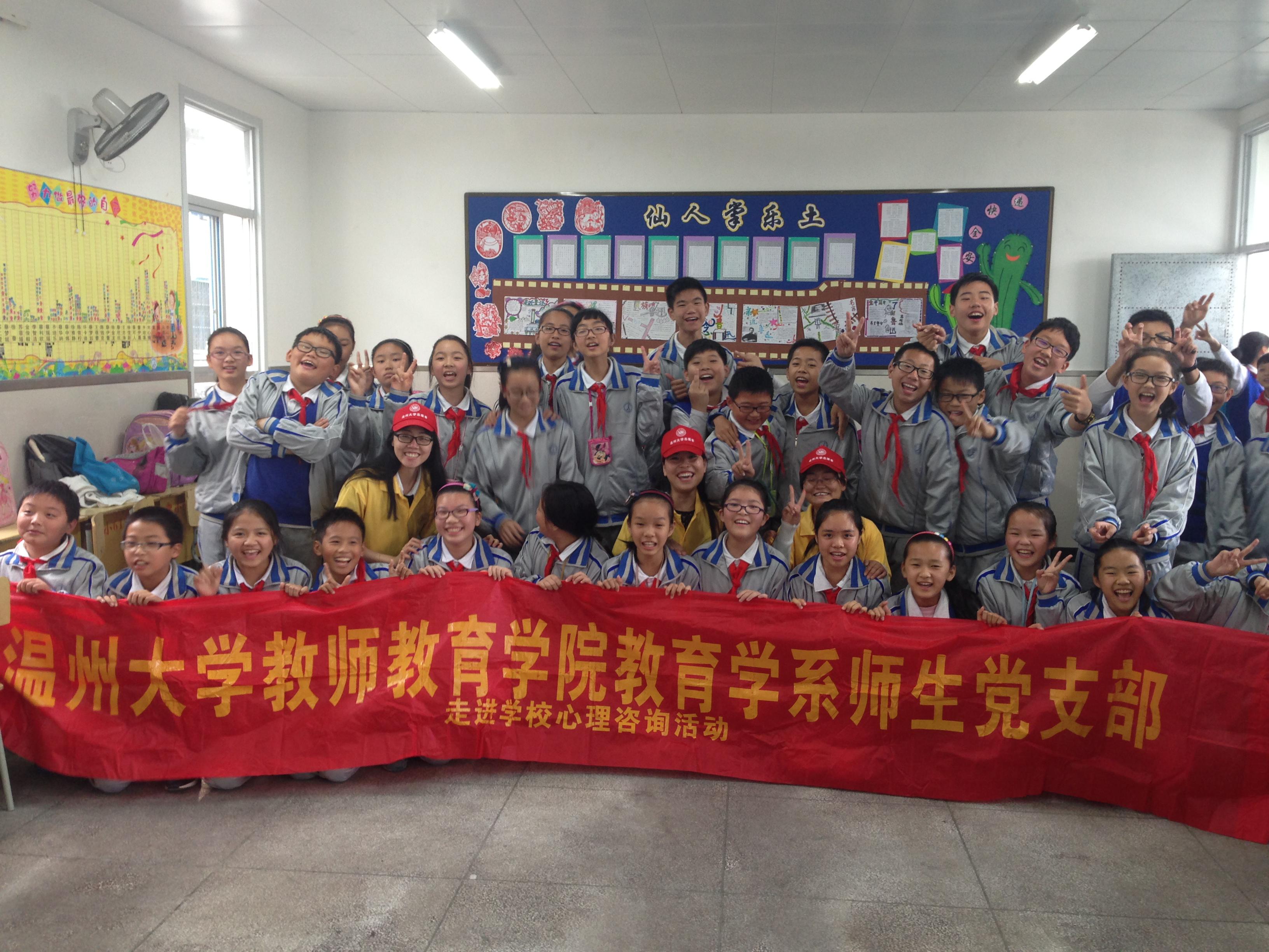 党员实践基地授牌仪式。 在授牌仪式之前,研究生党支部的张娟娟同志和范明惠同志分别给霞林小学六年级两个班级的同学分别上了培养自信心的心理团体辅导以及提高记忆技巧的心理课程。辅导课程紧张有序地开展,同学们有的聚精会神地参与着唯恐落后,有的在旁边禁不住兴奋地大叫。孩子们在愉快的活动中接受正面心理辅导感受自信,在有趣的课程中激发了对记忆技巧的无限兴趣。 辅导课程结束之后,正式举行了授牌仪式。我院研究生党支部书记戴冕同志、霞林小学学生工作处陈丽老师,以及研究生党支部同学参加了仪式。该基地项目由p站视频