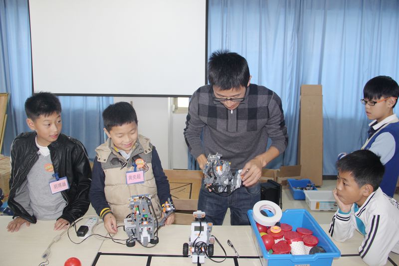 在自然科学实验室,小朋友们认真听老师讲解,对显微镜下的微观世界产生了浓厚的兴趣,并自己动手制作切片,仔细观察;在科学制作实验室,他们热衷于乐高机器人的搬运活动;在心理测量实验室,他们配合志愿者,克服困难努力完成每一项测验……