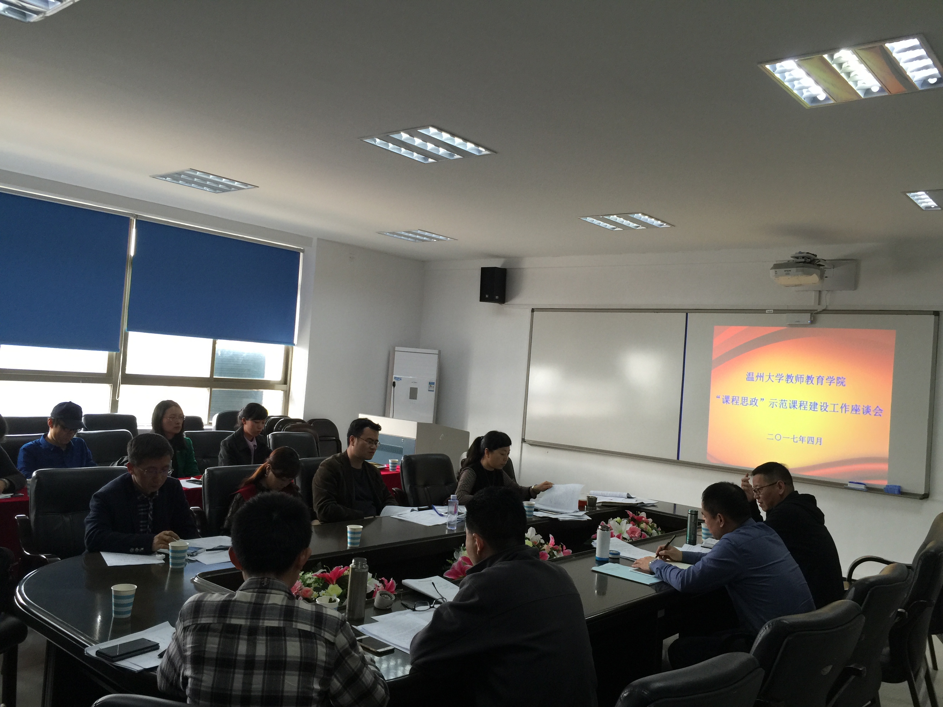 杨立淮同志首先向与会人员传达了中共中央和浙江省委关于加强和改进新形势下高校思想政治工作的文件精神,与会同志一起认真学习了习近平总书记在全国高校思政工作会议上的重要讲话精神和夏宝龙书记在浙江省高校思想政治工作会议上的重要讲话精神,学习了上海市高校关于“课程思政”建设的实践活动以及温州市“园丁奖”获得者赵焕光教授的事迹。