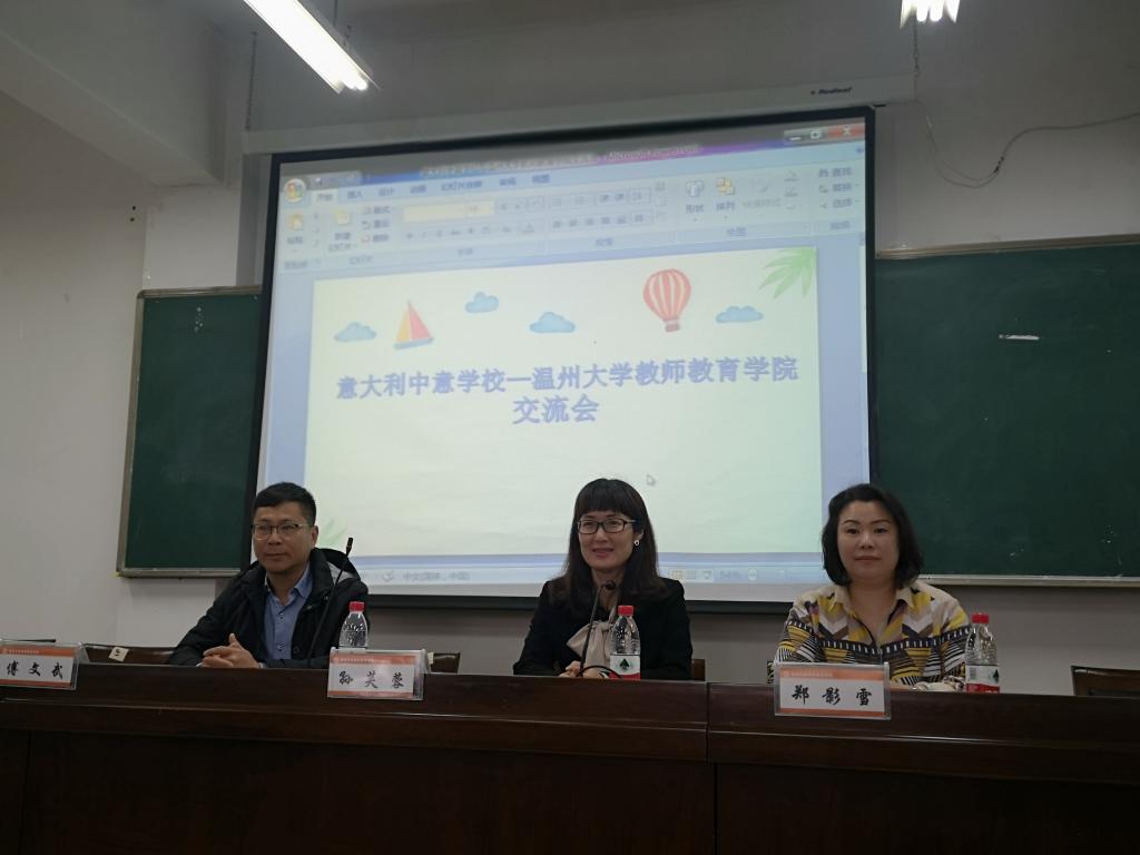 讲座中,国际实验班班主任刘育光老师感谢教师p站视频 孙芙蓉院长出席本次讲座,并介绍了意大利中意学校。从2000年创校至今,中意学校在长期的教学实践中,倡导“走向教育民主,追求适性发展”的办学思想,始终坚持“为学生的终身发展和幸福奠基”的办学宗旨,2015年被国务院侨办授予“海外华文教育示范学校”。中意学校多年来承担中外教育交流的义务和责任,不仅和当地的那不勒斯东方大学合作,并与我校p站视频 达成友好合作,成为温大海外教师培训基地,其幼儿园更是p站视频 义大利分校实验幼儿园。