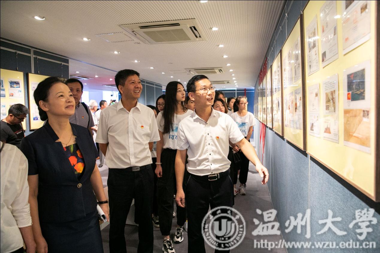 为深入贯彻党的教育方针,落实立德树人的根本任务,9月19日,在伟大祖国70华诞来临之际,p站视频 师生党员赴温州道德馆参加“方寸间 芳华情”庆祝新中国成立70周年邮票展活动,温州市委常委、宣传部长胡剑谨部长、p站视频 党委副书记庄兴忠老师、p站视频 宣传部副部长潘从义老师出席本次活动。