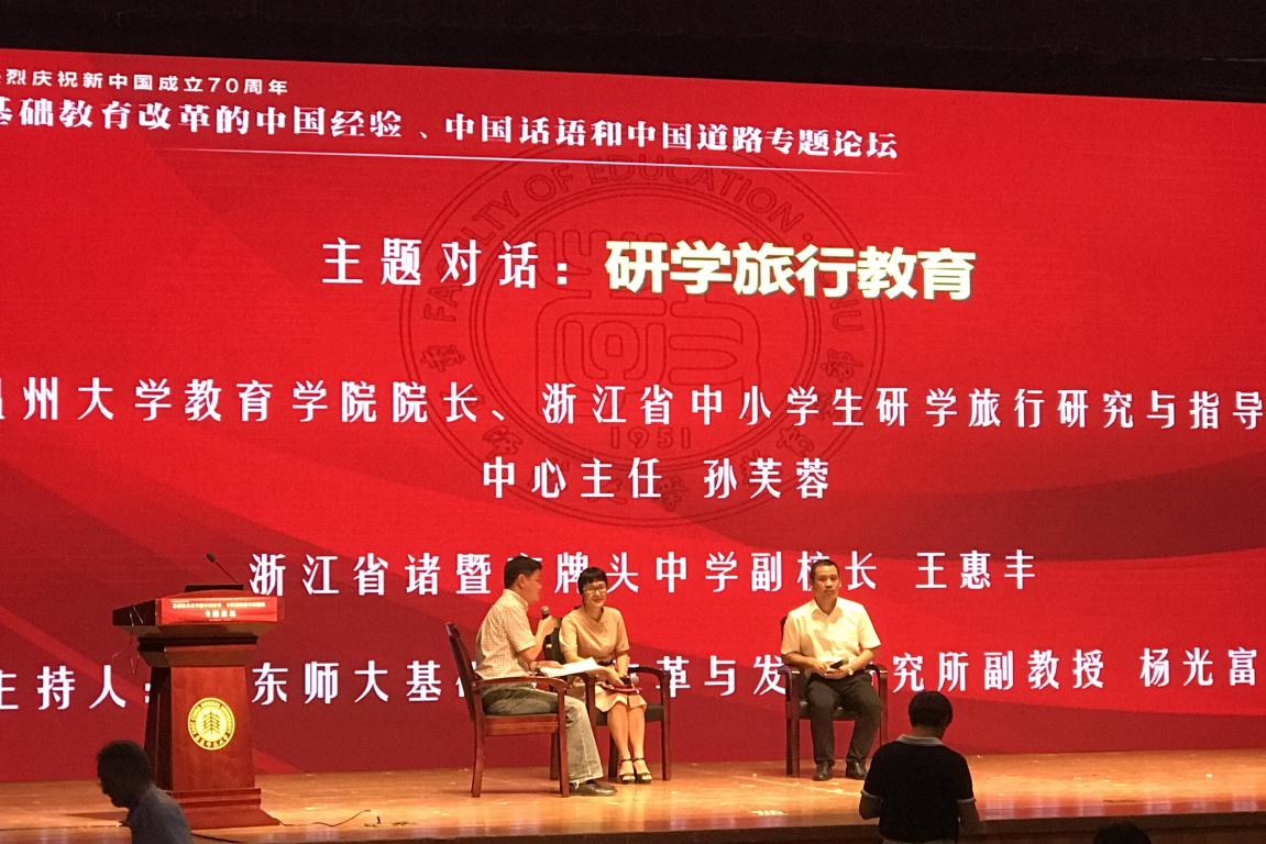 在论坛的主题对话环节,p站视频 院长、浙江省中小学生研学旅行研究与指导中心主任孙芙蓉教授作为受邀嘉宾就浙江省在研学旅行教育方面的创新性实践、理论研究做了交流,向参会者介绍了研学旅行的浙江经验,引起了热烈反响与广泛关注。