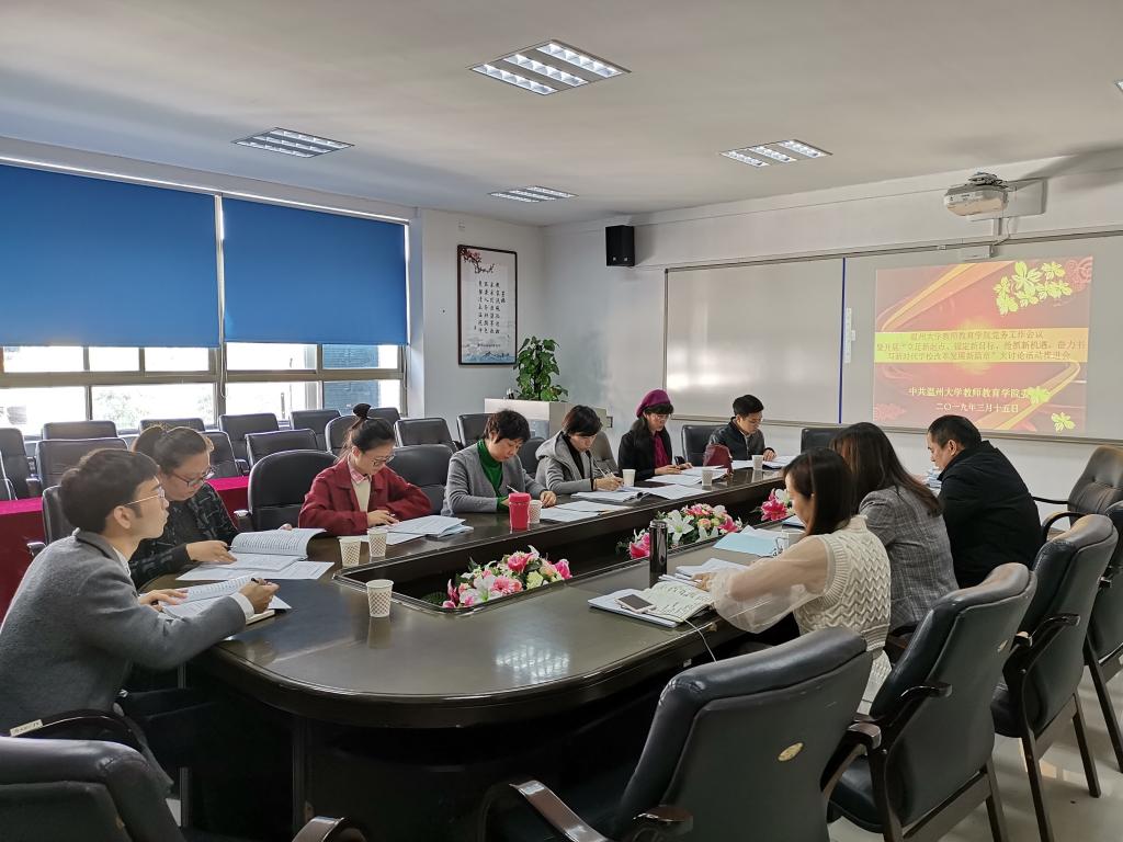 杨立淮书记传达学校党务工作会议精神并部署新学期学院党建与组织工作。他指出,2019年,学院党建工作的总体思路是深入学习习近平新时代中国特色社会主义思想,全面贯彻落实党的十九大、十九届二中、三中全会精神,按照新时代党的建设总要求,全面贯彻党的教育方针,落实全面从严治党的各项要求,在校党委的领导下,始终围绕学校和学院中心工作,强化党建引领与保障作用,发挥好基层党组织和党员的作用,深化党建工作体系和特色品牌建设,围绕中心抓党建,抓好党建促发展。