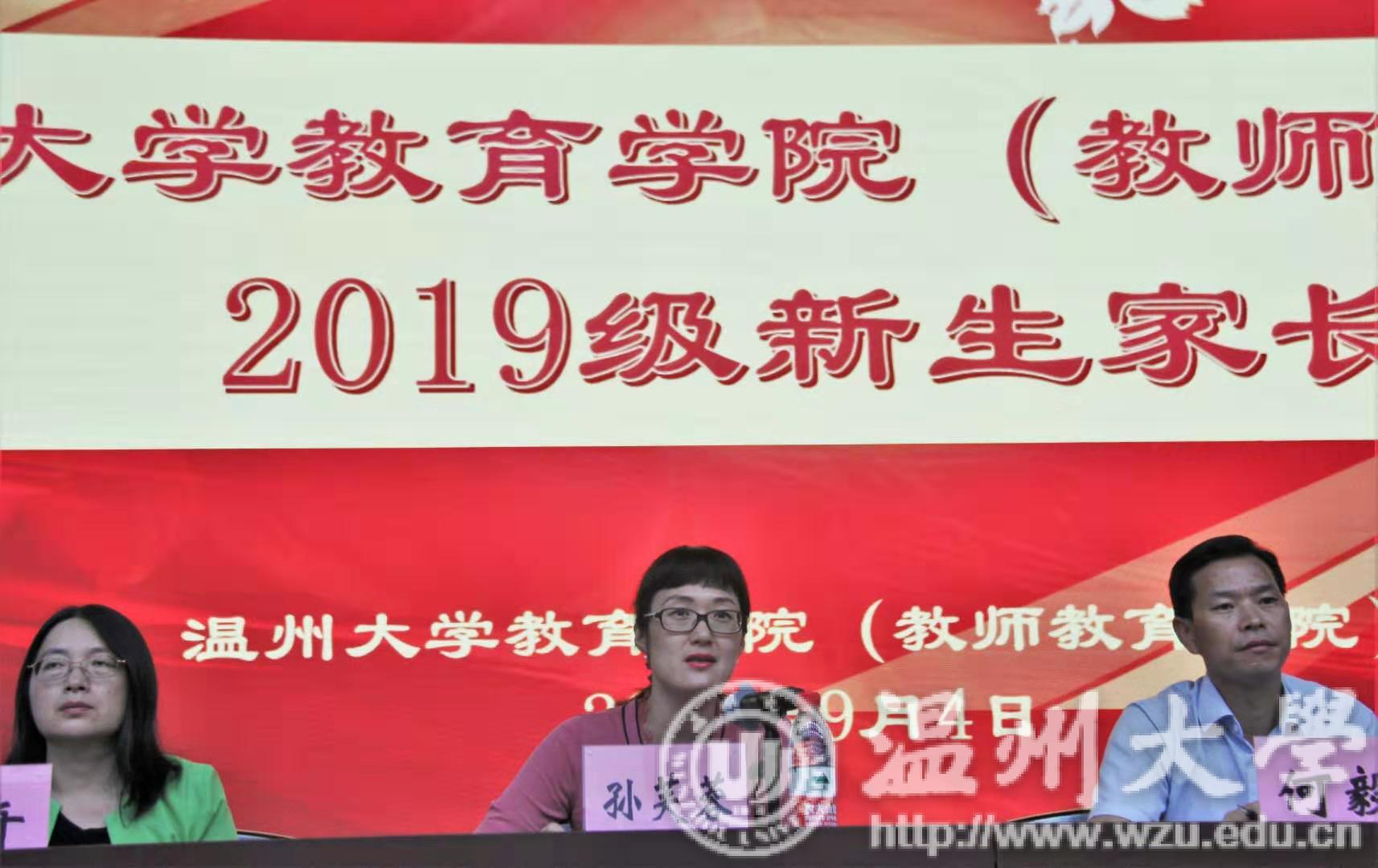 p站视频 2019级新生家长会于9月4日下午在学院一楼报告厅举行。p站视频 院长孙芙蓉,党委书记何毅,教育系书记周奇,应用心理系书记陈美芬,教育技术系书记李丽,小学教育系书记刘海霞,学前教育系书记陈旭微出席了本次会议,到场的还有各新生班级班主任,学工办主任严晓秋,学工办辅导员潘士杰、何奔奔以及2019级新生家长,此次家长会由党委副书记彭小媚主持。