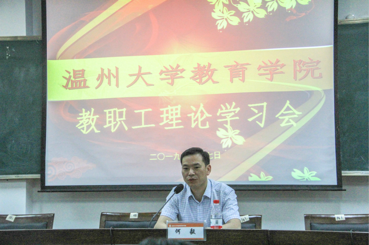2019年7月7日下午,我院在南校区9C301报告厅召开全体教职工理论学习会。学院党委书记何毅做了题为《不忘初心、牢记使命,坚定不移跟党走》的报告。
