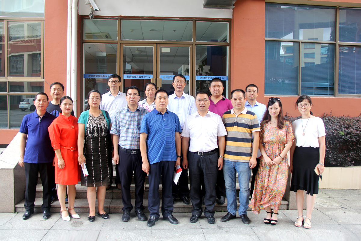 2018年7月13日上午新疆阿克苏教育局张百和书记、陈常龙副局长一行9人在温州市委教育工委专职副书记白炳兴的陪同下来我院教师教育实验教学中心参观,我院书记杨立淮、副院长叶新东、副书记杨丽君、继续教育科科长林鹣鹣、实验中心主任李小志和实验教学教师热情接待了来客。