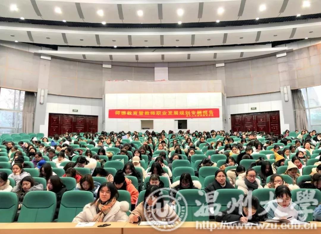 1月2日下午,学院邀请温州市第四幼儿园园长金晓群于9号楼报告厅作以《幼儿教师实现自我发展的四个关键期》为主题的师德教育暨教师职业发展规划专题报告。出席本次活动的领导与老师有教师p站视频 党委副书记杨丽君、学前教育系副主任林琛琛、学生科副科长严晓秋以及学生科老师何奔奔。