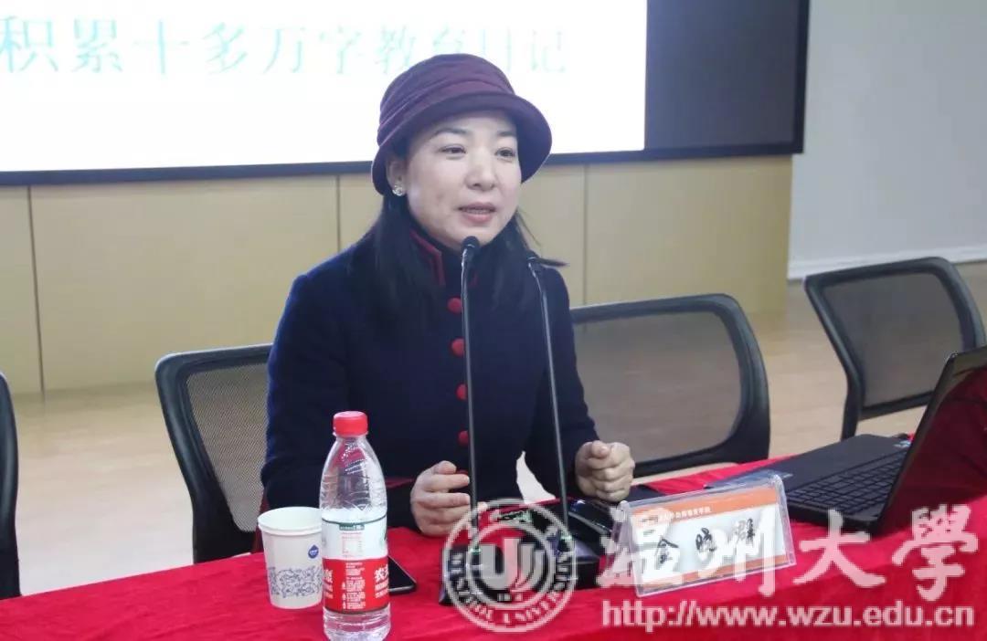 报告会伊始,严晓秋老师对金晓群园长作简要介绍。金园长为浙江省特级教师,现任温州城市大学客座教授、中国教育学会家庭教育专业委员会研究员等职务。作为知名校友,她同时也在指导、帮助教院学子更好地提高职业素养。