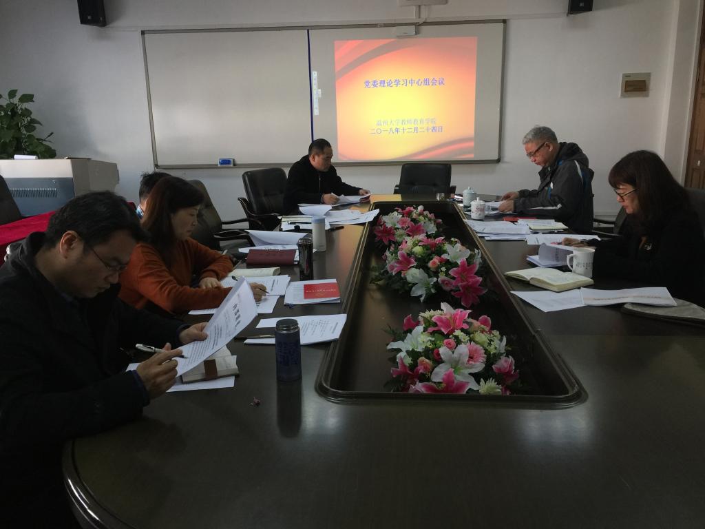 12月24日上午,我院在南校区9A410会议室召开理论学习中心组会议,学院党政班子领导参加,杨立淮书记主持。