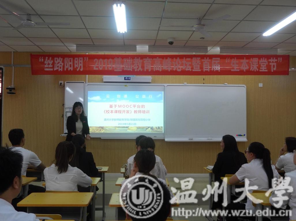 提升开发能力,开展线下培训5月21日,孙芙蓉院长受宁波市援疆指挥部和库车教育工委邀请,在“丝路阳明”2019基础教育高峰论坛暨首届“生本课堂节”做大会主旨报告《校本课程开发的理论与实践》,旨在提升教师专业能力和综合素养。与会期间,面向库车阳明小学参加《校本课程开发》慕课教师学院做MOOC线下培训,围绕课程制作方式、设计思路、学习要求、教师指导情况等进行全面讲解,鼓励教师们坚持学完课程,积极参与课程谈论,尽快提升自我校本课程开发能力。