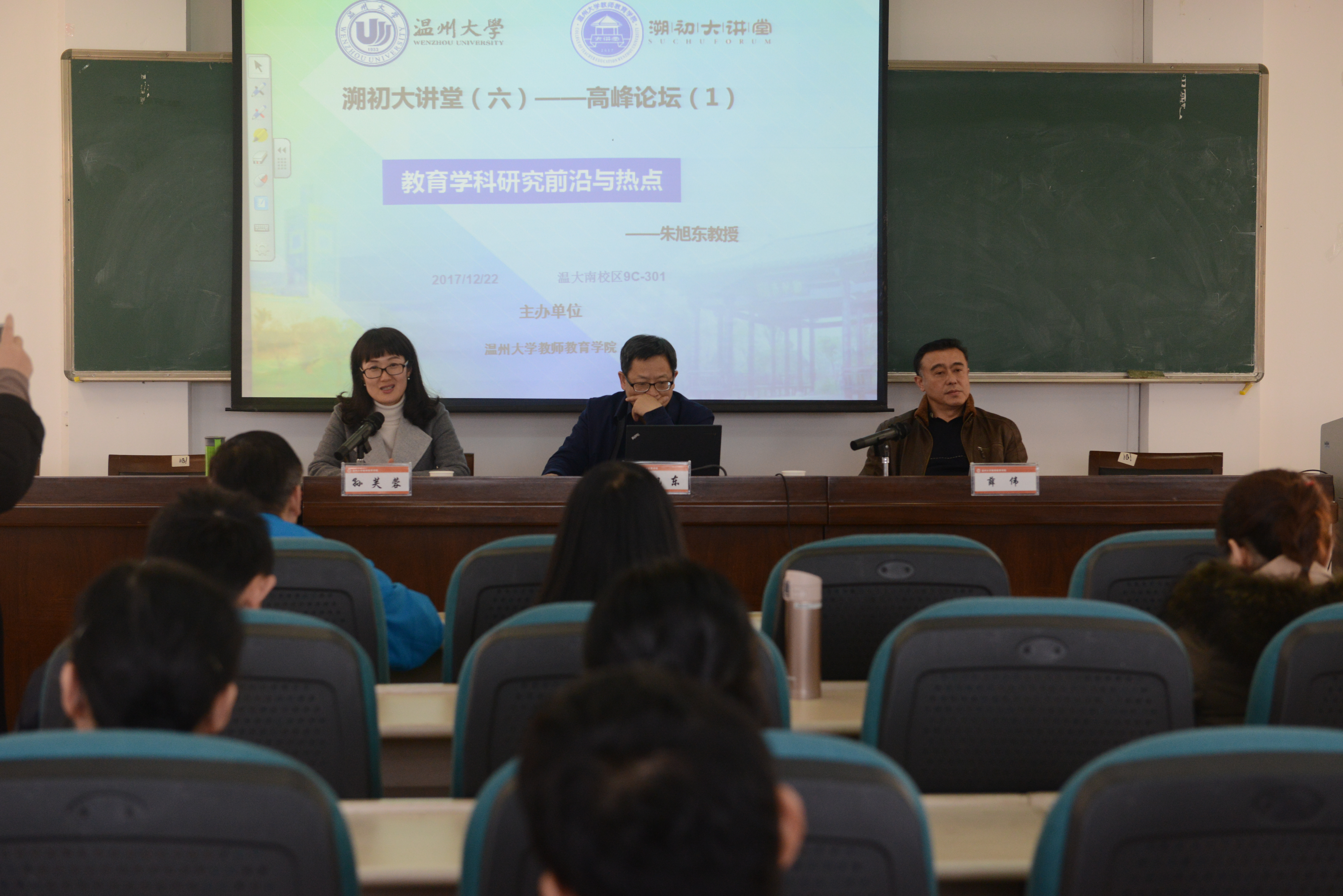 为学习贯彻党的十九大优先发展教育事业的精神,推进新时代教师教育事业新发展,p站视频 教师p站视频 在溯初大讲堂中开设高峰论坛系列,拟邀请国内外知名教育学研究学者开设系列讲座,以有效对接教育学科前沿发展,快速提升教育学学科建设水平。高峰论坛首期讲座于2017年12月22日下午在南校教育楼9C301室隆重举行,特邀北京师范大学教育学部主任、博导朱旭东教授作专题报告:教育学科研究前沿与热点。教师p站视频 教师、研究生,学校教育学学科教师,温州市教育教学研究院、温州市教师教育院的教师100余人参与此次会议。会议由p站视频 教师p站视频 院长孙芙蓉教授主持。