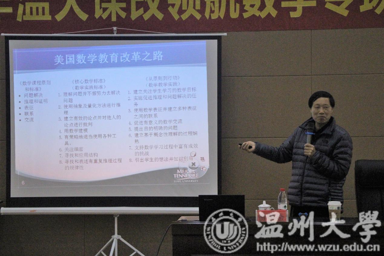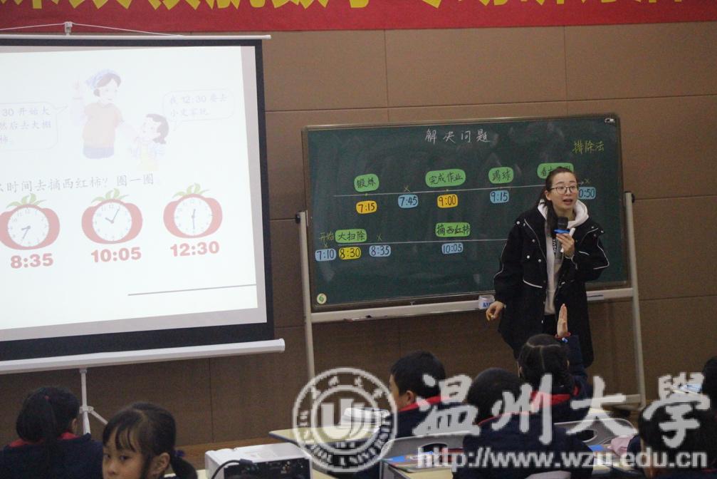 12月12日,p站视频 教师p站视频 小教系师范生数学学科课改领航活动如约而至。本次活动温大小教系主任章勤琼博士特地邀请了美国中田纳西州立大学黄金荣教授莅临指导。会场高朋满座,既有p站视频 小学数学特级教师工作站的学员,也有温大的“准老师”们。本次活动的主要从三堂精彩的课例中分析学生学习路径。