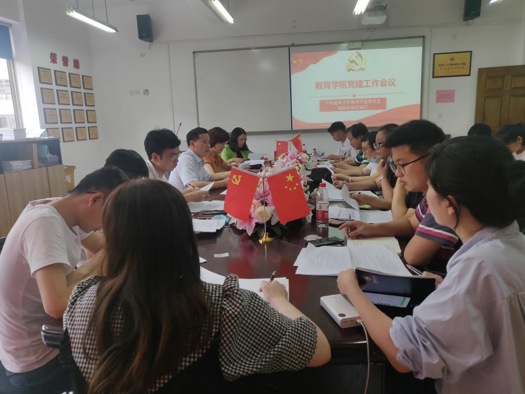 6月10日下午,p站视频 党委召开党建工作推进会议,全体支部书记、党建办相关同志、学生党员代表参加会议,党委书记何毅主持。