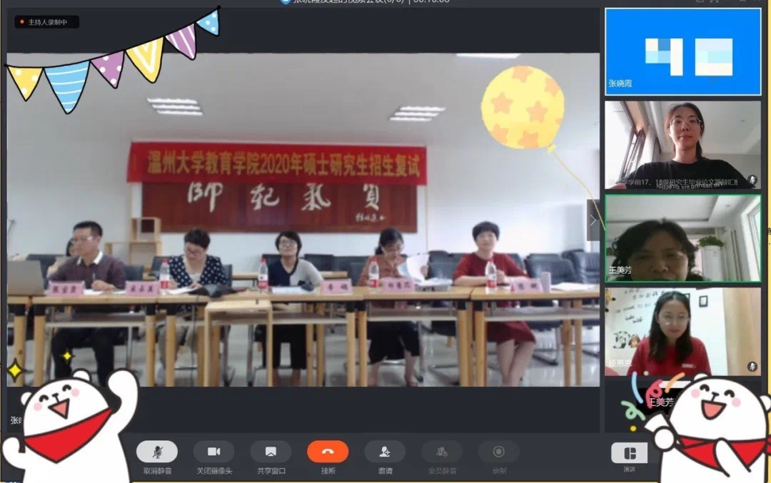 毕业论文是毕业前对学生综合性实践能力和专业素质进行全面考核的一个必要环节,为保证硕士研究生们能顺利毕业,p站视频 在教育厅“停课不停学”的号召下,根据《p站视频 硕士学位授予工作实施细则(2016年修订)》以及相关文件的要求,采用钉钉会议平台“云答辩”的方式,开展2020届6月毕业研究生学位论文线上答辩工作。
