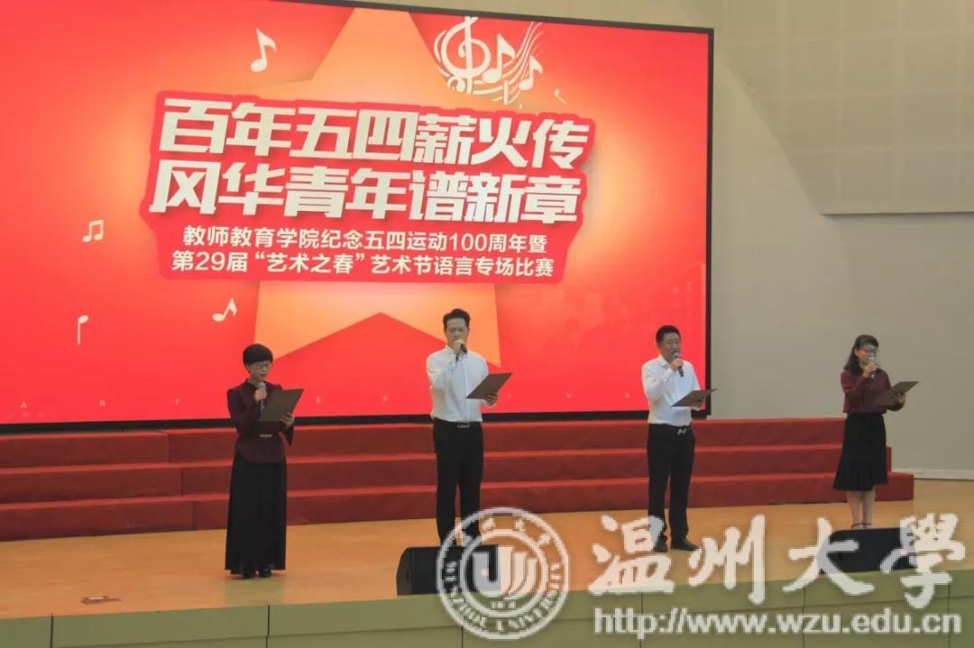 “一代人有一代人的长征,一代人有一代人的担当。”为纪念中华人民共和国成立70周年,五四爱国运动100周年,2019年4月28日,教师p站视频 纪念五四运动100周年暨第29届“艺术之春”艺术节语言专场比赛在教院报告厅隆重举行。