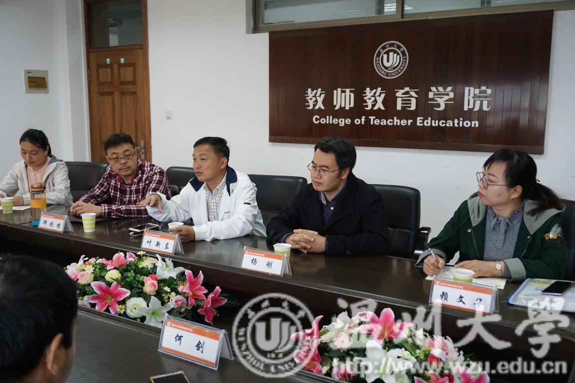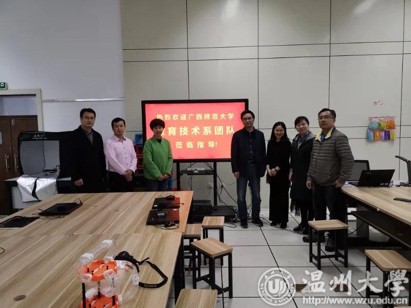 会议首先由叶新东副院长代表学院向来访客人表示热烈欢迎,并向来访客人介绍学院和教育技术专业发展与建设概况。广西师范大学教育技术系谭姣连主任对学院的接待表示感谢,并说明了此次来访希望交流的主题:教育技术学专业课程体系设置、教师专业发展、人才培养模式等问题。教育技术系杨刚主任专门就我院教育技术专业发展与建设情况作了专题报告,并与他们着重就教育技术专业课程体系创新、专业建设、人才培养模式、实践教学体系、研究生培养模式、教师专业发展、人才引进等方面的发展情况进行了深入的交流。来宾们对学院发展和教育技术系专业发展与建设给予了高度评价,并对我院教育技术专业实验室建设表示出浓厚的兴趣。广西师范大学教育技术系一行表示,期待在已有的友好合作的基础上,进一步发展和深化有关教育和科研的合作关系。随后,客人们参观了我院教师教育实验教学中心,体验了虚拟实验场景活动,并与实验中心李小志主任进行了充分交流。下午,广西师范大学教育技术系一行在教育技术系赖文华老师陪同下参观访问了温州中学。随后,在胡来林教授、张新立副教授的陪同下,参观了我院创客空间,并对我院创客空间的发展给予高度评价。