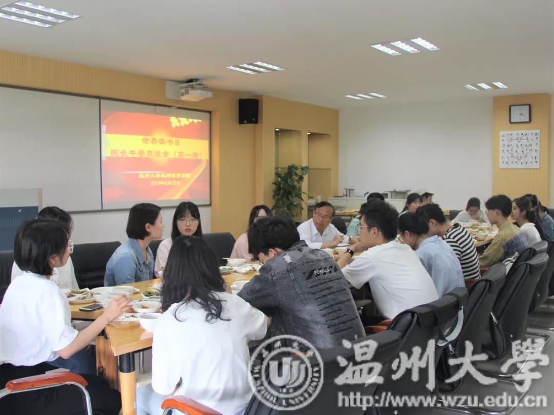 与书相伴,不负韶华。4月23日,以世界读书日为契机,就着这四月春景,教师p站视频 第一期院长午餐交流会在学院9C401室召开。学院副院长彭小明教授、学院党委副书记杨丽君老师、学生科辅导员吴超智、潘士杰老师与学院研究生、本科各专业学生代表20余人共进午餐,交流阅读的心得体会和学习情况。交流会由辅导员吴超智老师主持。