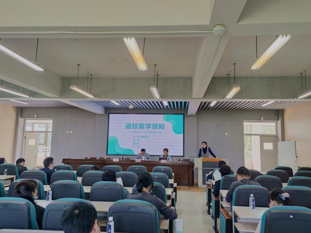 会上,学工办主任严晓秋首先做春季返校复学相关工作介绍。严主任从返校前须知、返校当天须知、返校后须知、返校后个人防护等四个方面进行了详细的说明,并整体梳理了疫情防控期间各项学生工作内容,就上半年中小学教师资格考试、求职创业补助、就业工作、心理困难学生、家庭经济困难学生、学业困难学生等相关情况做了相应的说明。