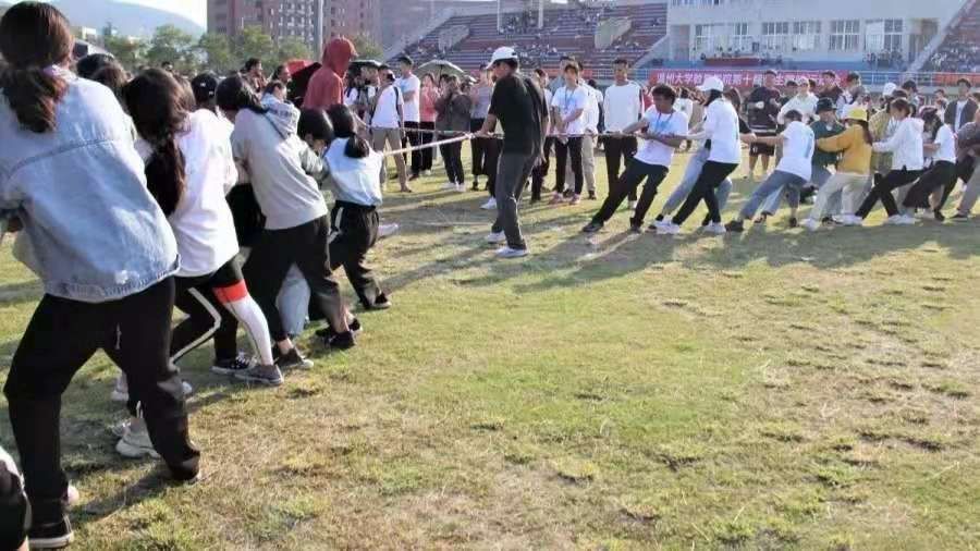 我院学子间不仅有体能与技巧的较量,更有对团队合力的检验。五人六足、三角拔河、集体跳大绳,各班热情高涨,充分展现出了集体的青春与活力。阳光下他们拼搏的身影,是教院最美风景线。
