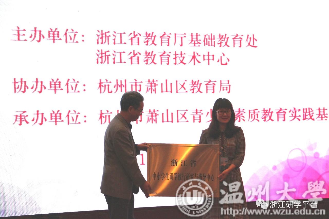 会议初始,浙江省教育厅基础教育处处长方红峰、杭州市萧山区教育局副局长吴金炉出席仪式并分别发表了致辞。处长方红峰从研学旅行的价值认识、建立联动机制、加强基础建设、完善制度安排四个方面发表讲话。 萧山区教育局副局长吴金炉指出,研学旅行的开展一定要依托教育实践基地,重视研学旅行的课程建设、导师培训以及平台开发。接着,方红峰处长为p站视频 “浙江省中小学生研学旅行研究与指导中心”授牌,p站视频 教师p站视频 院长孙芙蓉作为中心主任代表p站视频 上台接牌。