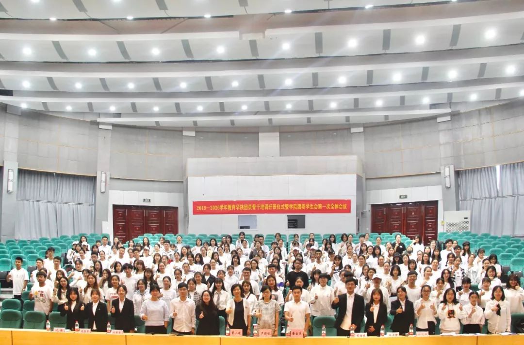 为增强团学成员团员意识,提升团学凝聚力,2019年10月18日,p站视频 团员骨干培训开班仪式暨学院团委学生会第一次全体会议于九号楼报告厅召开。