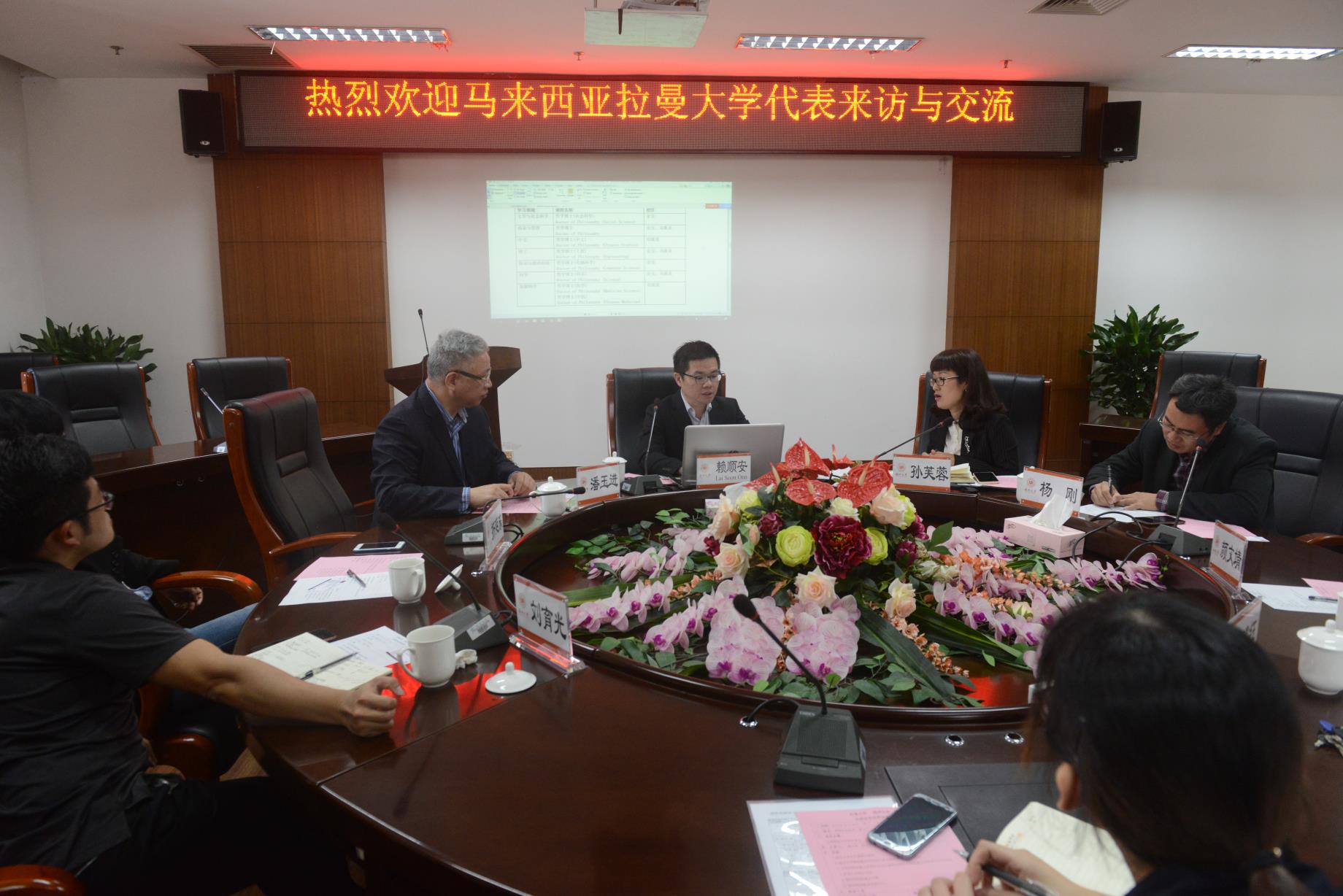 2018年11月30日上午9:30,马来西亚拉曼大学国际处处长Dr. Lai Soon Onn来我院洽谈国际教育合作事项,并参观了我院教师教育实验中心。学院领导孙芙蓉院长、潘玉进副院长、院长助理杨刚博士以及各系主任、骨干教师在岩松堂展示厅出席并召开了这次会议。会后,院长孙芙蓉教授代表学院向马来西亚拉曼大学国际处处长Dr. Lai Soon Onn赠送礼物,并集体合影。