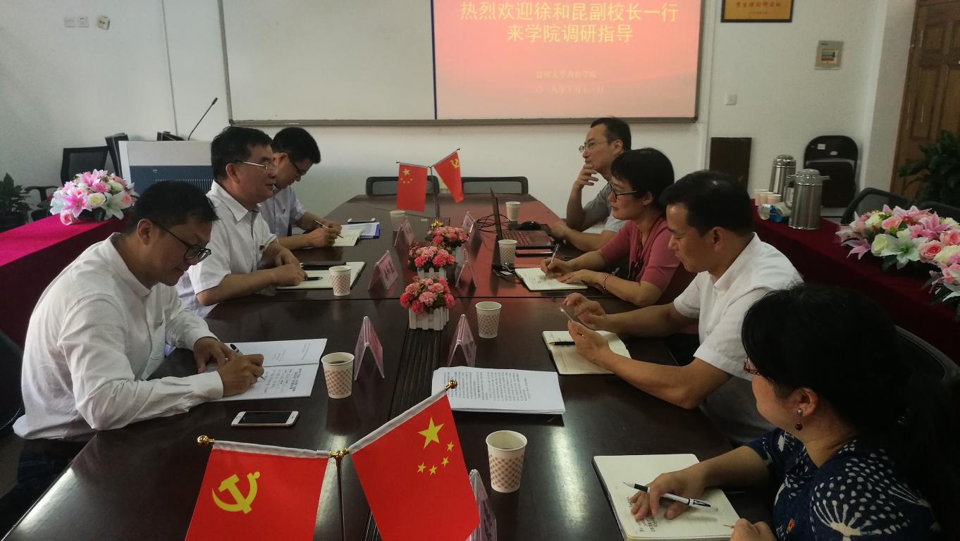 徐和昆副校长认真听取了汇报,充分肯定了学院领导班子为学院发展付出的努力,鼓励我院继续做好学院目标规划,不断优化专业结构,做强学科建设,加快人才引进,持续推进申博工作,并嘱咐随行人员要对问题进行汇总、梳理、分类,反馈给相关职能部门,能解决的要尽早解决。