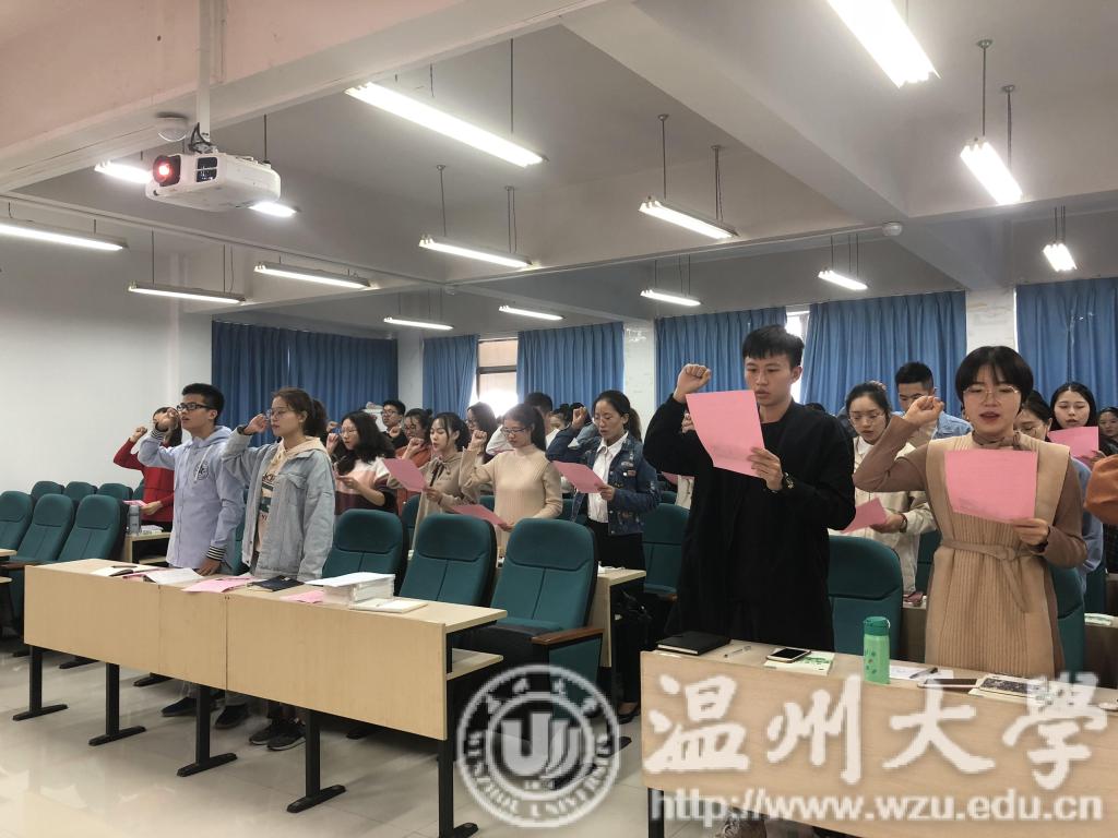 收获真才实学,感谢恩师教诲,珍惜当下时光。第八期“溯初班”老生代表李倩如围绕“收获”、“感谢”和“珍惜”三个关键词分享了她在“溯初班”的所学所获,所感所悟,希望新学员们在新起点上能够重新定位自己,在高平台上不断提升自己。第十期“溯初班”新生代表鲍珍怡同学代表新学员讲话后,带领全体溯初班同学进行新生入学宣誓仪式。严肃庄重的誓言,铿锵有力的宣誓,表明了新学员们对教师教育事业坚定不移的决心。