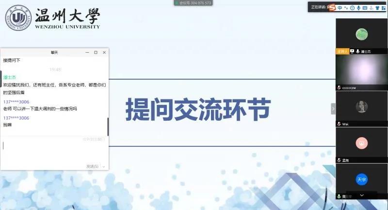 活动伊始,孟尧从复试、调剂、温大、读研四个角度切入与同学们分享了她在考研路上的经验和收获,她向同学们强调:“主动出击,提前沟通,扎实准备,机会总是偏爱有主动的人。”并就考研复试流程、调剂情况等方面的问题与大家进行了交流。