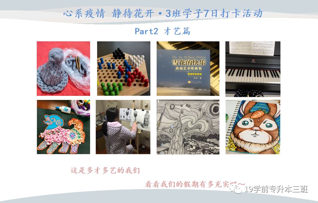 聪聪:在这次特殊的假期中不仅学会了新技能,更难得的是拥有了和爸妈相处的宝贵时间,要好好珍惜!